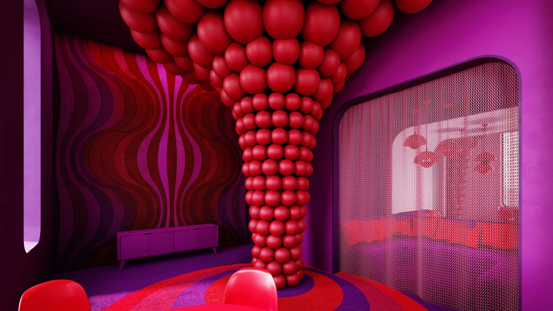 🎂 Cake: un cuarto rojo para reuniones íntimas o sesiones creativas.