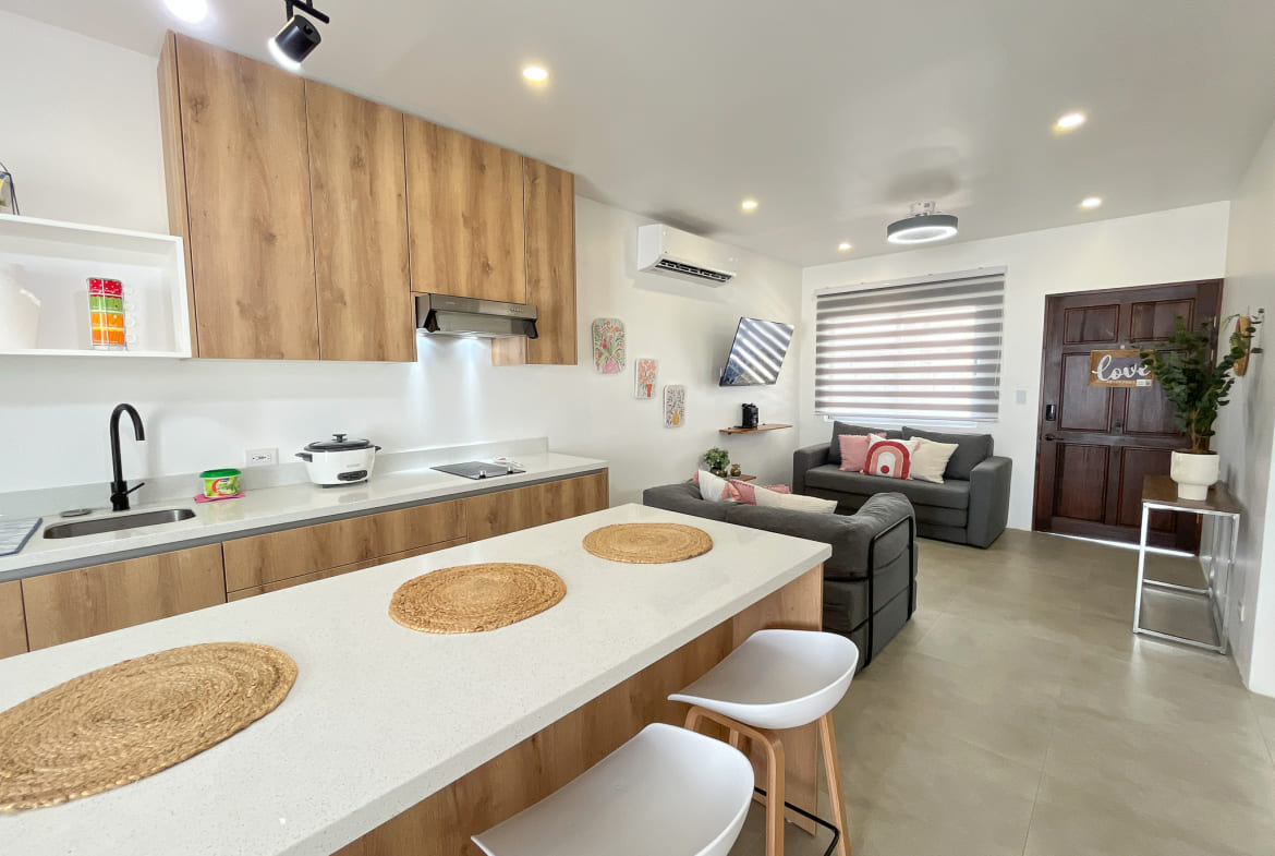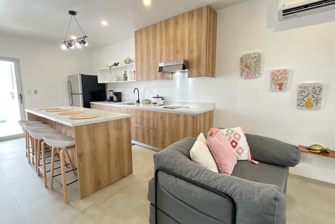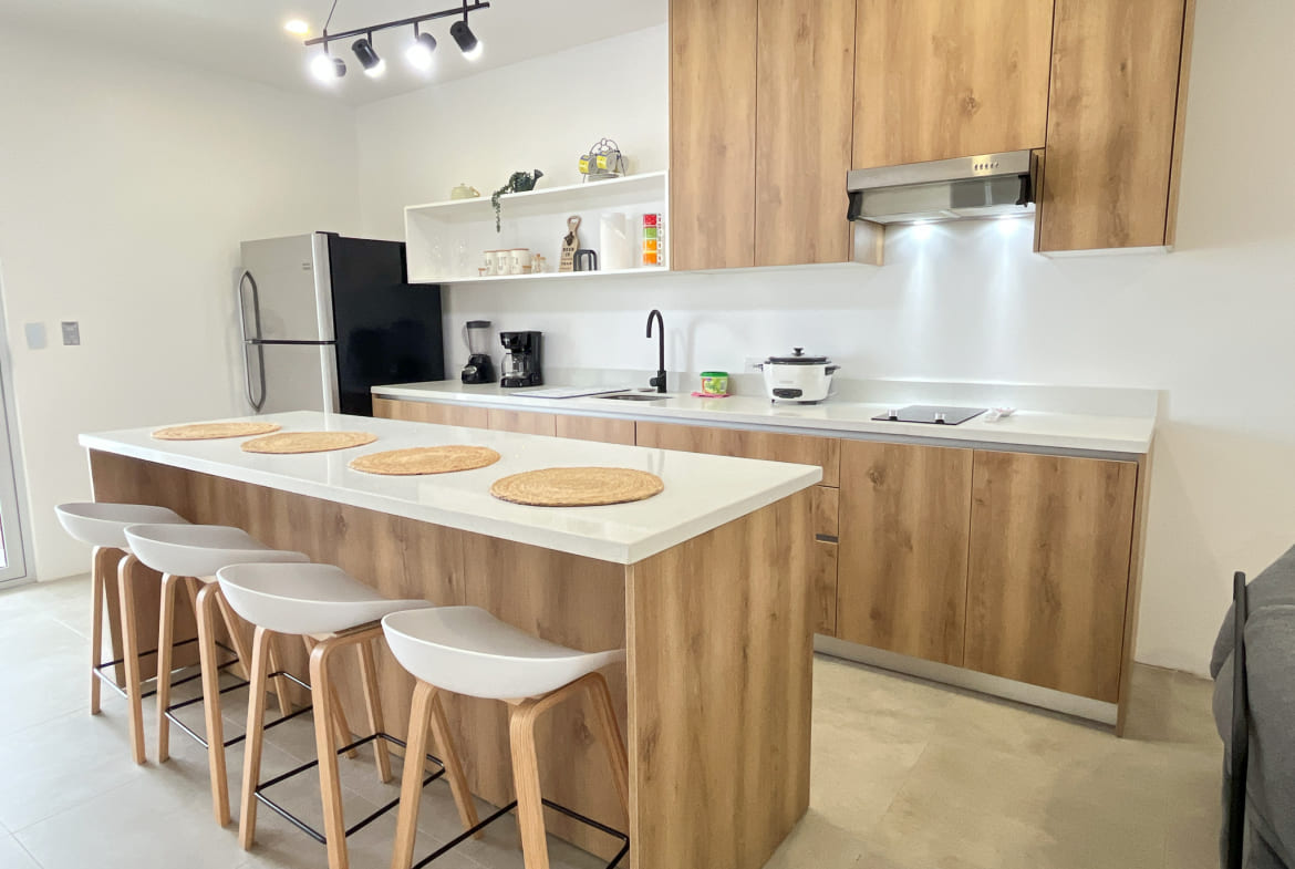 Cocina de concepto abierto con acabados modernos