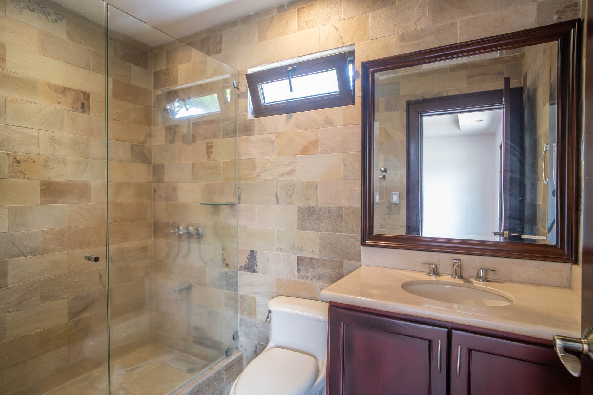 3 habitaciones, cada una con baño privado y walk-in closet.