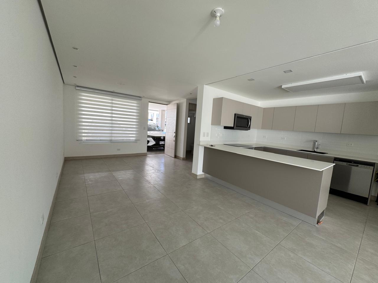 ✔ Amplia sala-comedor con cocina integrada y gabinetes espaciosos