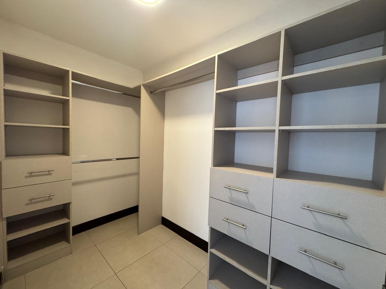 Cuarto principal con walk-in closet, aire acondicionado, balcón, terraza y baño privado, Sala de TV con excelente iluminación, baño secundario, 2 habitaciones ambas con ventilador y closet elegantes, además en el tercer nivel una habitación mezzanine, igual puede utilizarse de oficina con preciosas vistas y una bodega grande. La Cocina amplia con mueble de Quarzo, con alacena, integrada con una amplia Sala y Comedor con ventanales altos, terraza, Cuarto de servicio con baño completo, lavandería interna, Cochera para 4 vehículos con bodega, Ventiladores en todas las habitaciones (aunque casi no se necesitan)