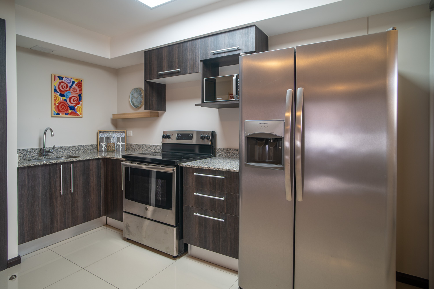 •Piso de porcelanato en área social y cerámica tipo madera en los dormitorios