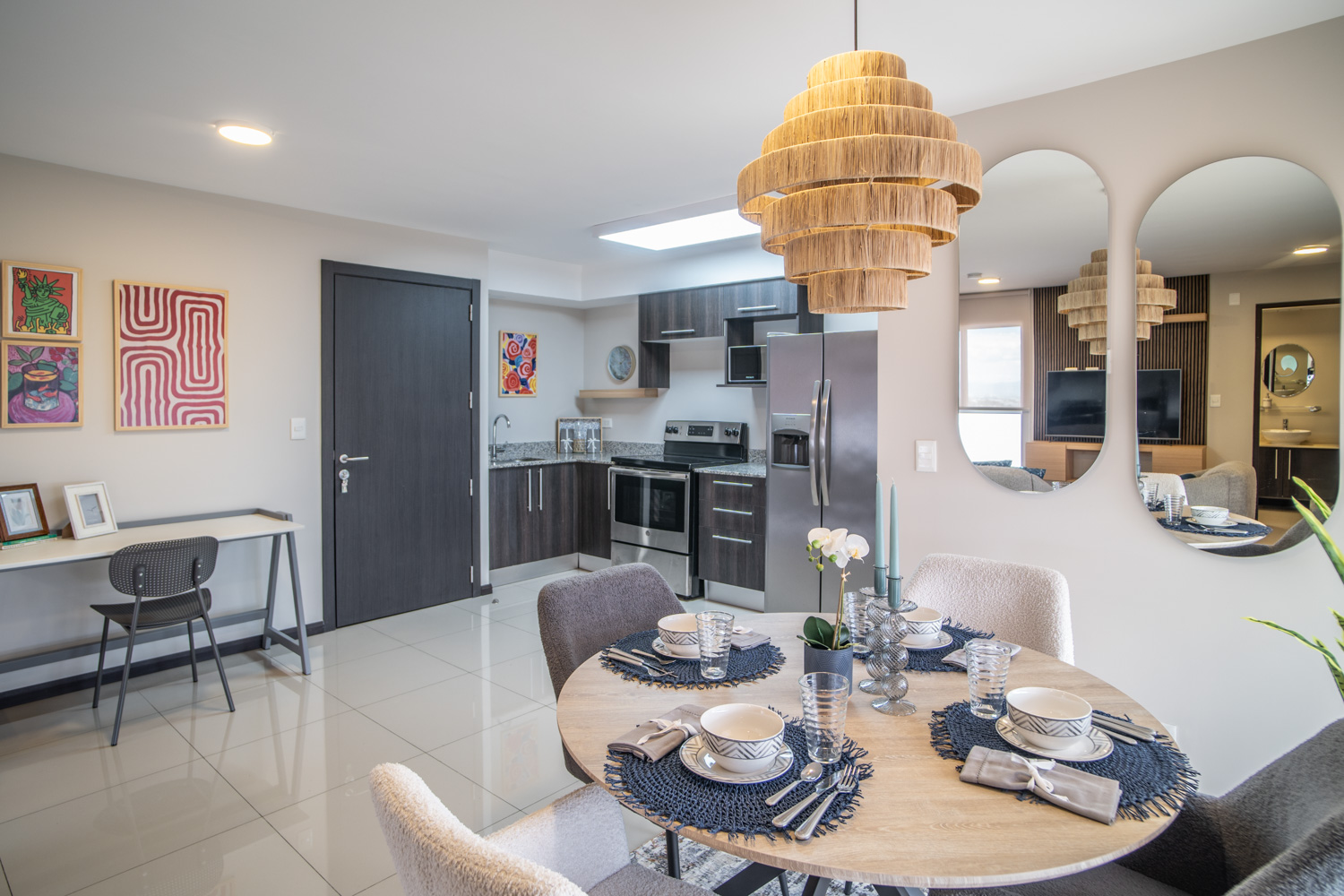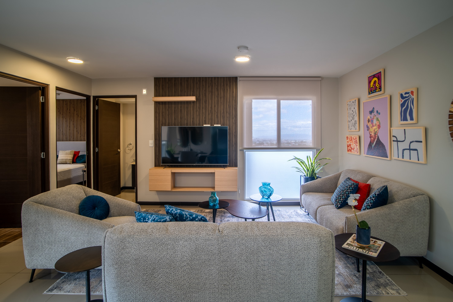 Con 56 m² habitables, cada metro cuadrado está optimizado para garantizar amplitud, funcionalidad y confort. La sala de estar se integra con la cocina, creando un ambiente acogedor y bien iluminado gracias a sus grandes ventanales que permiten la entrada de luz natural.