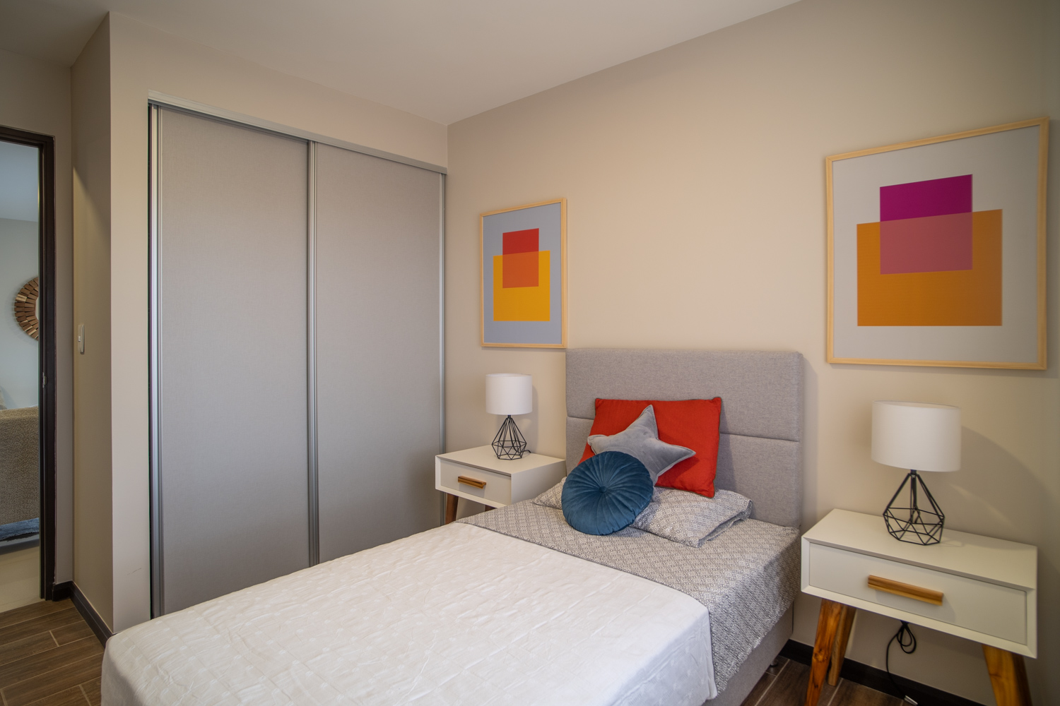 •2 habitaciones espaciosas, con closets y puertas corredizas para optimizar el espacio