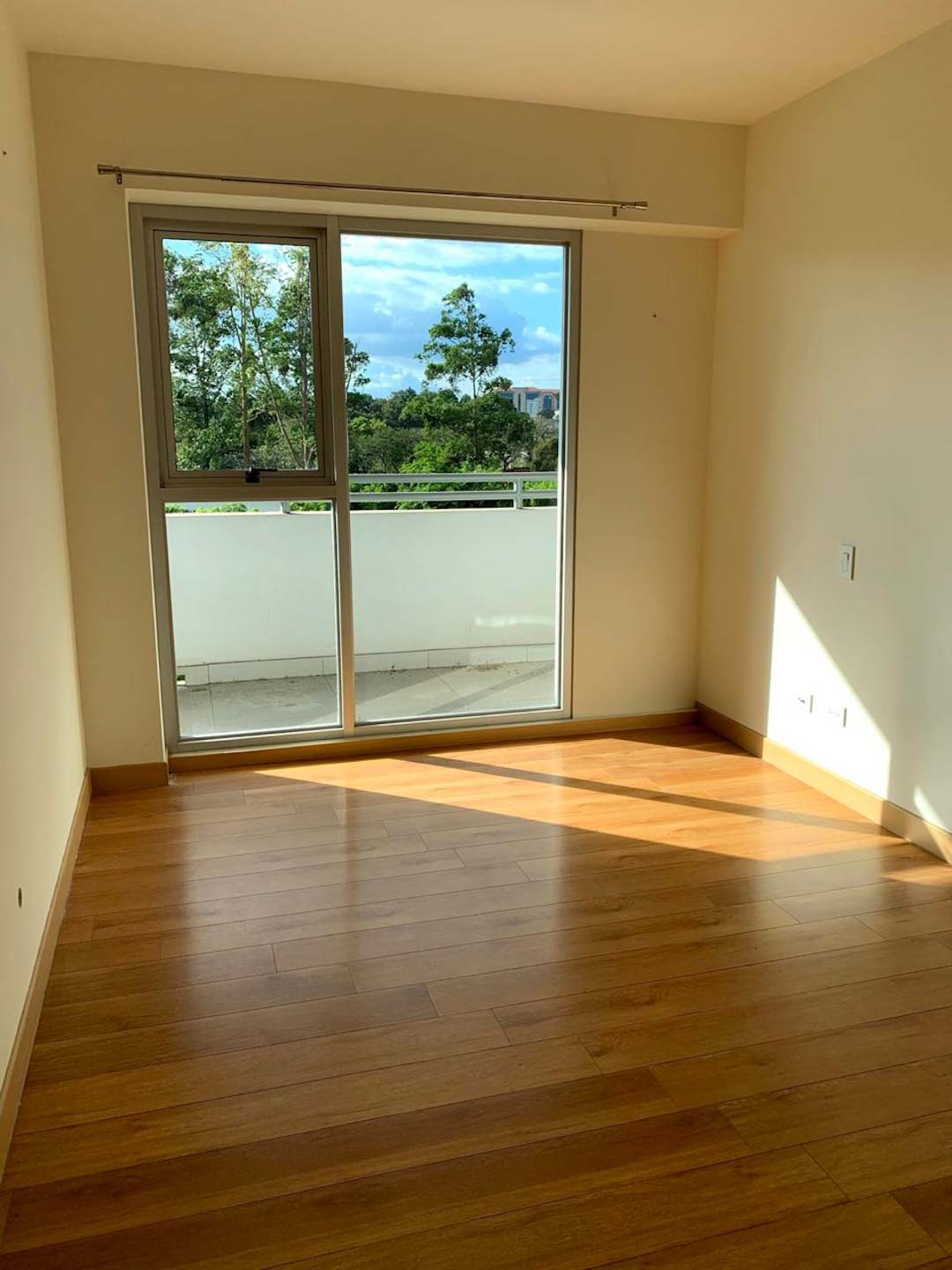 Este apartamento se encuentra en el tercer piso, posee sala, comedor, cocina, 2 habitaciones secundarias que comparten 1 baño completo + 1 habitación principal con walk in closet y baño privado, también posee 2 balcones y 2 parqueos (uno bajo techo y otro sin techar)