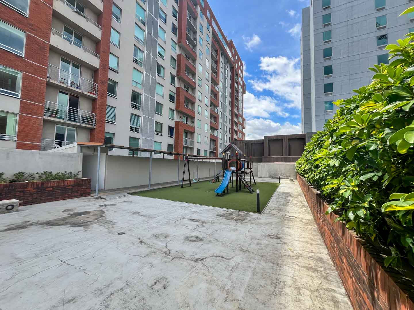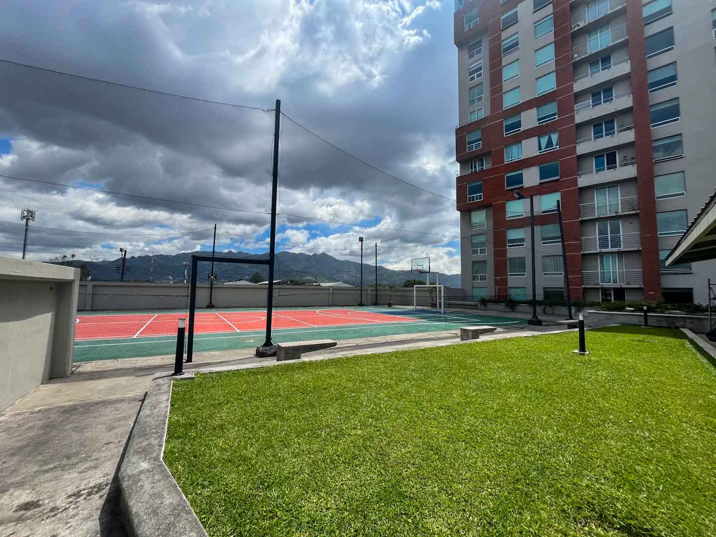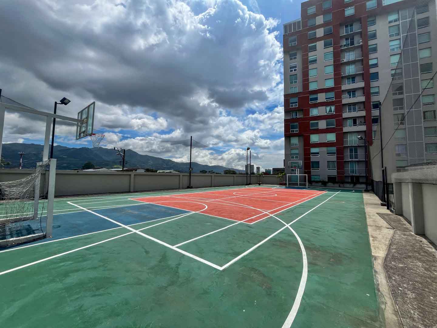 El condominio cuenta con una amplia piscina, cancha de tennis o basquet, salón club, área de juegos infantiles.