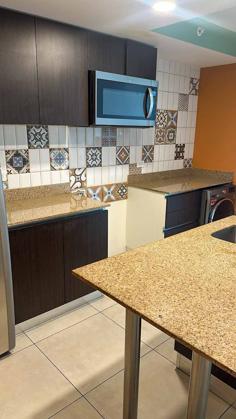- Incluye línea blanca y equipamiento: refrigerador, centro de lavado, microondas, extractor, televisor y cocina.