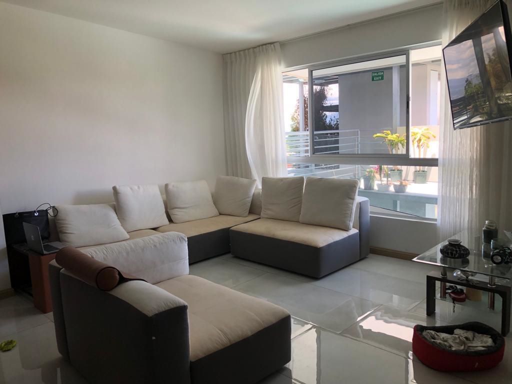 El apartamento mide 160m, tiene un área social amplia con Balcón con increíbles vistas, además de 3 habitaciones amplias el Cuarto principal con Walk-in-Closet, Cocina con Isla Desayunador con Extractor en Campana. Con cochera par 2 vehículos.