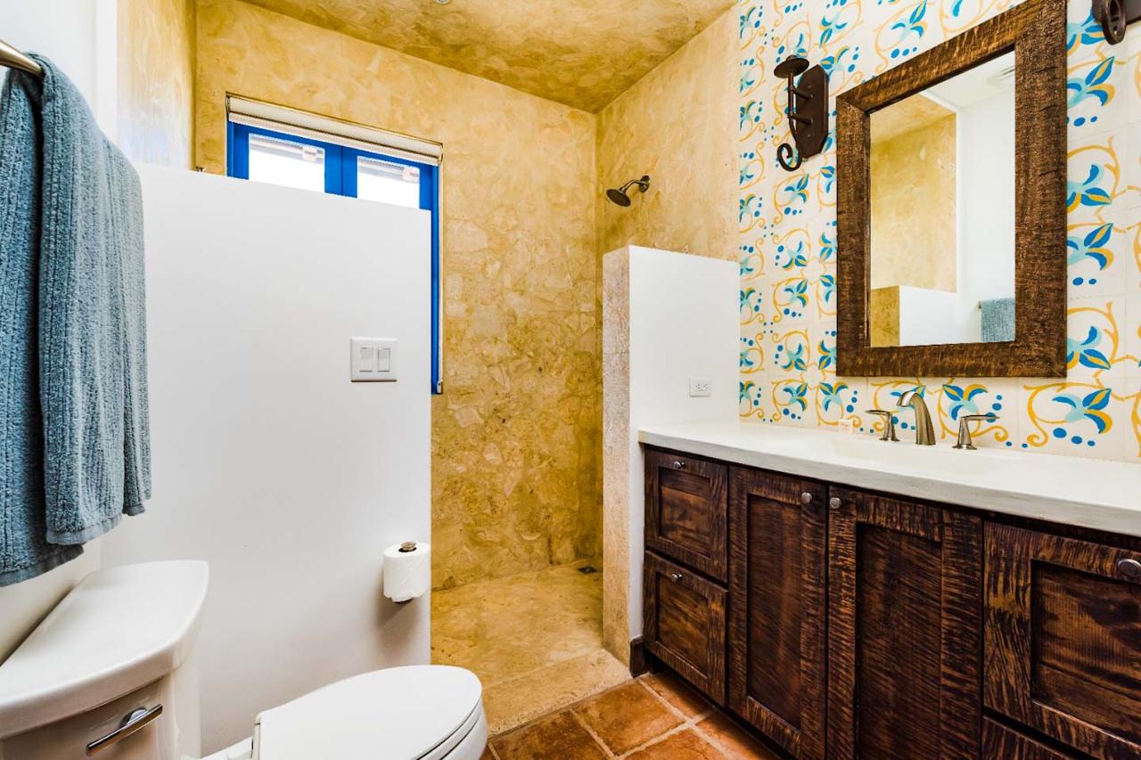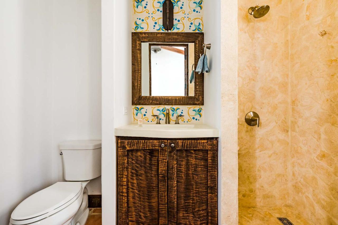 Tanto el dormitorio de invitados como el principal cuentan con baños en suite para mayor comodidad, y el dormitorio principal incluye un balcón con vistas al océano. Desde aquí, los residentes pueden disfrutar de vistas panorámicas de Calle Cartagena y los hermosos Islotes Pitahayas.