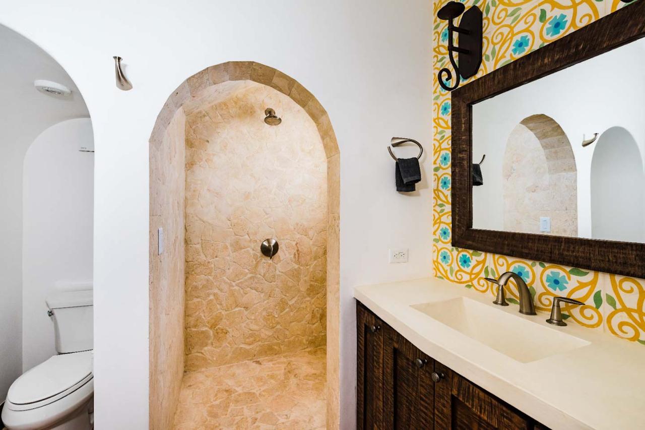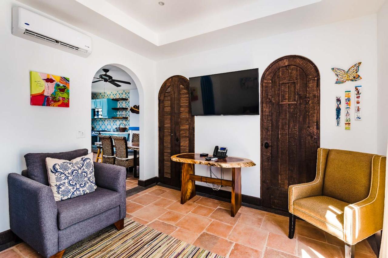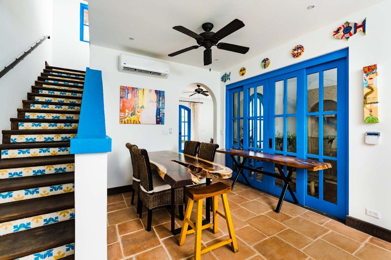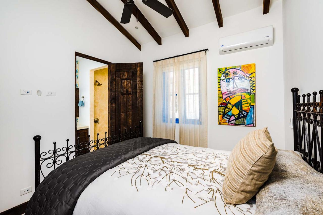 Both the guest and master bedrooms have ensuite bathrooms for added convenience, with the master bedroom featuring a balcony with ocean views. From here, residents can enjoy panoramic views of Calle Cartagena and the beautiful Islotes Pitahayas.