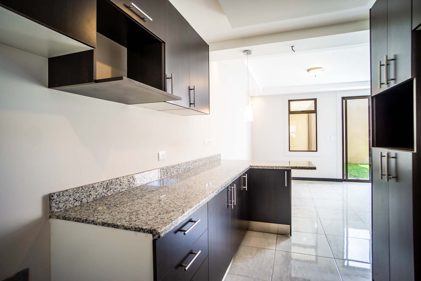 La casa esta distribuida en dos niveles. En la planta baja tenemos: Sala-Comedor y cocina independiente con hermosos muebles de sobre de granito. Área de pilas y Terraza. Un medio baño de visitas y bodega interna. Cochera para dos vehículos.