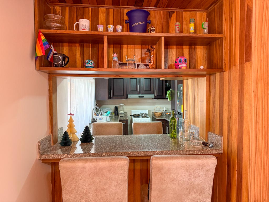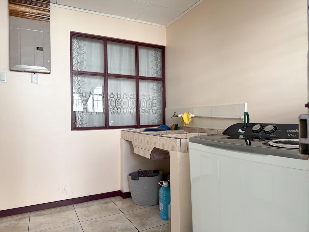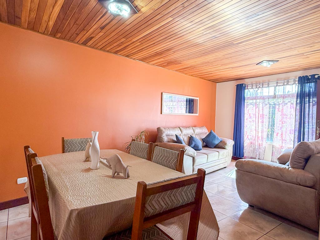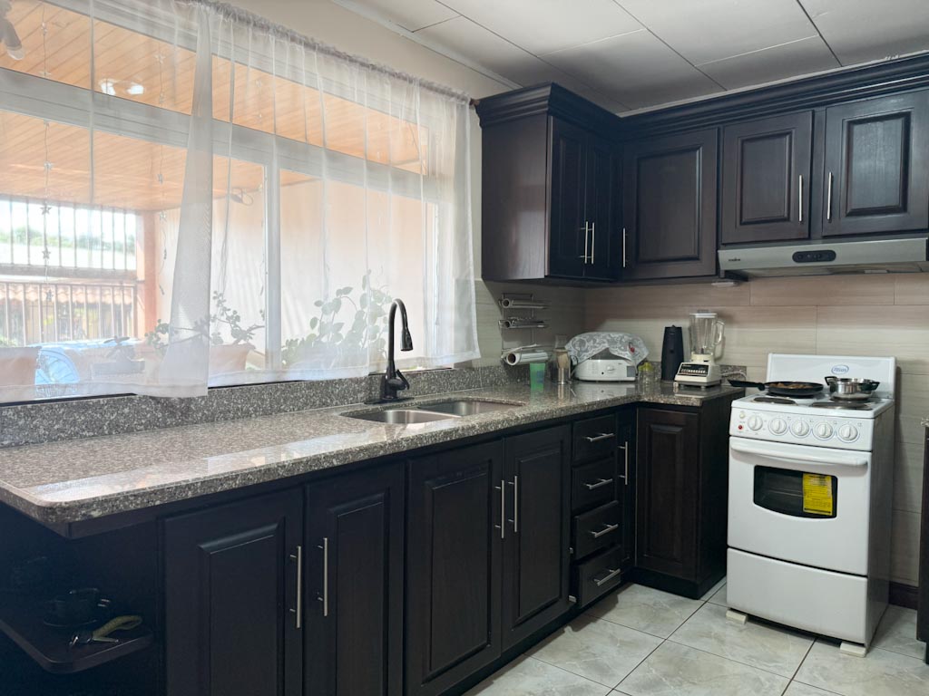 La casa es de 2 habitaciones y 2 baños con una amplia sala y comedor. Cocina amueblada con muebles en madera de Cedro y sobres en granito.