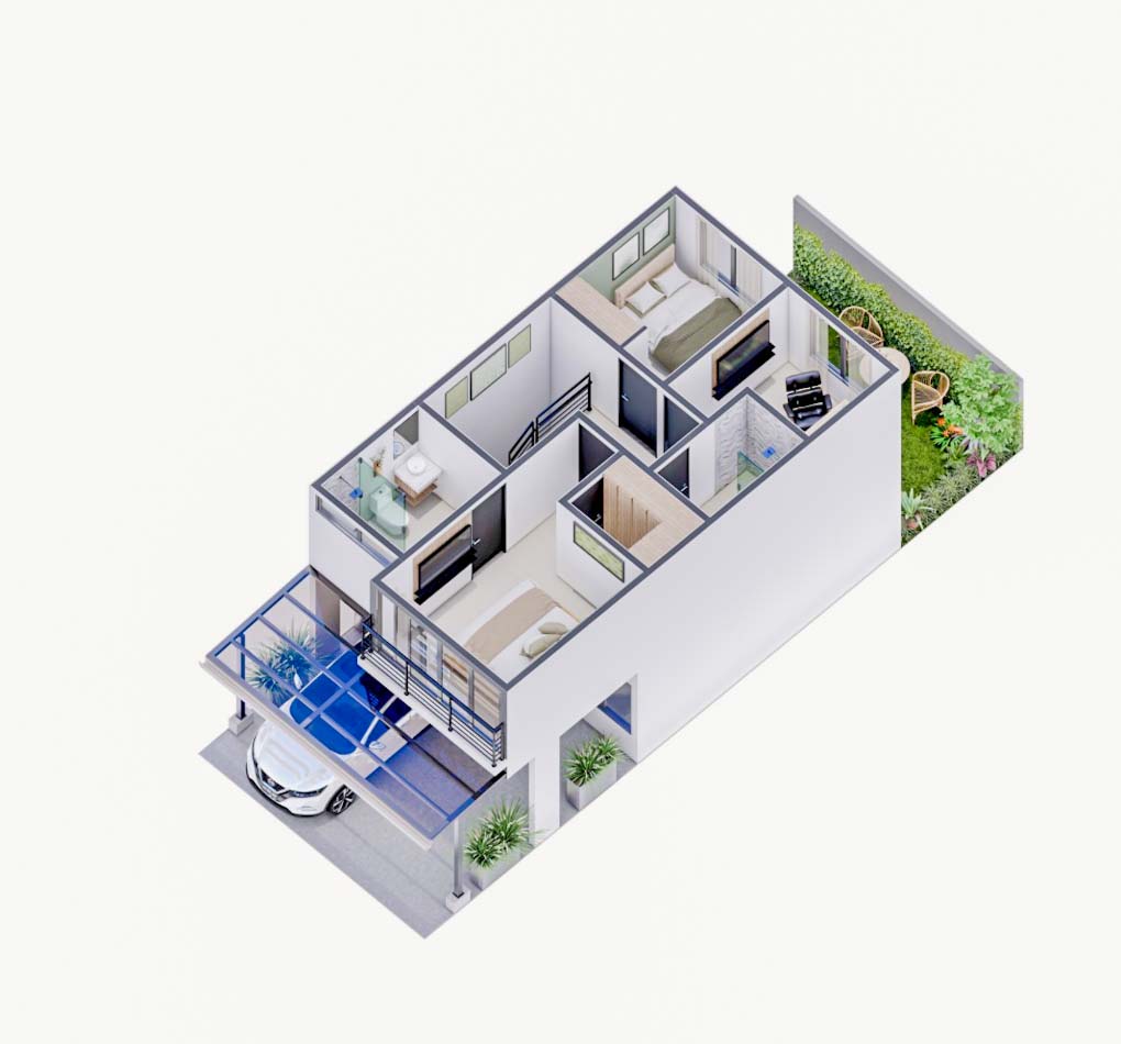 En el primer nivel, disfrute de un estacionamiento para dos autos, una amplia sala comedor y una cocina integrada con desayunador o isla, encimeras de granito o cuarzo, medio baño, lavandería y un bello jardín con posibilidad de terraza. El segundo nivel alberga tres habitaciones; las secundarias con closet y un baño compartido, mientras que la habitación principal cuenta con baño privado y walk-in closet en dos modelos.