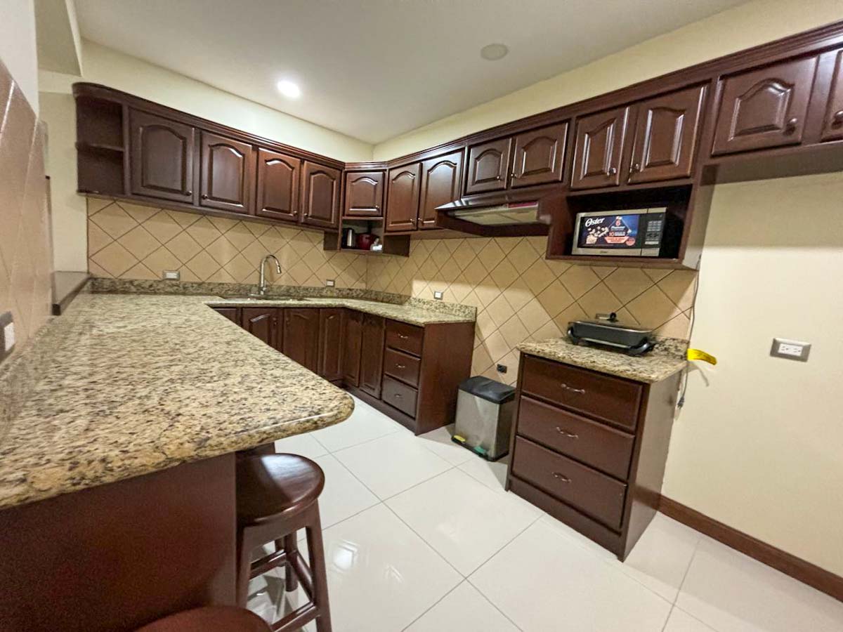 • Mueble de cocina con sobres de granito, diseñado para empotrar línea blanca.