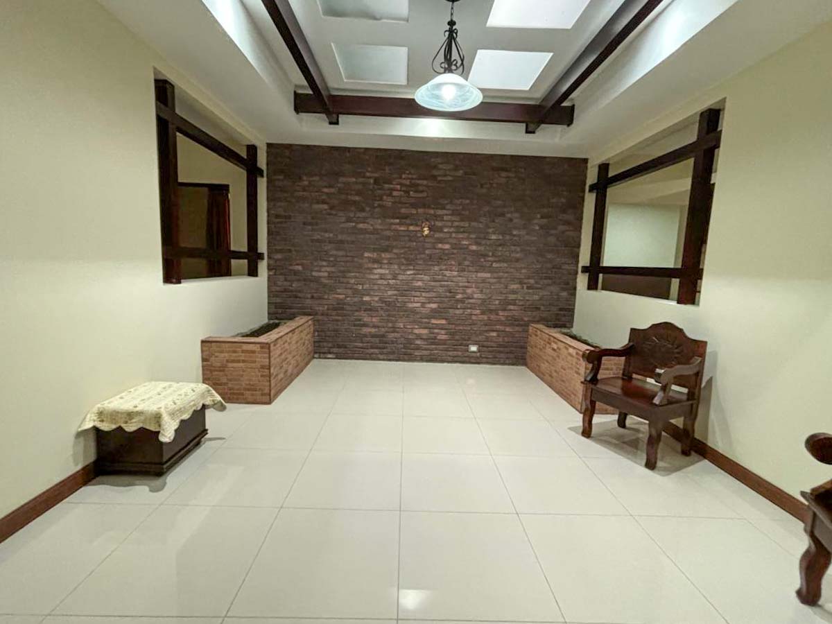 • Portón eléctrico y tapia de piedra laja que brindan seguridad adicional.