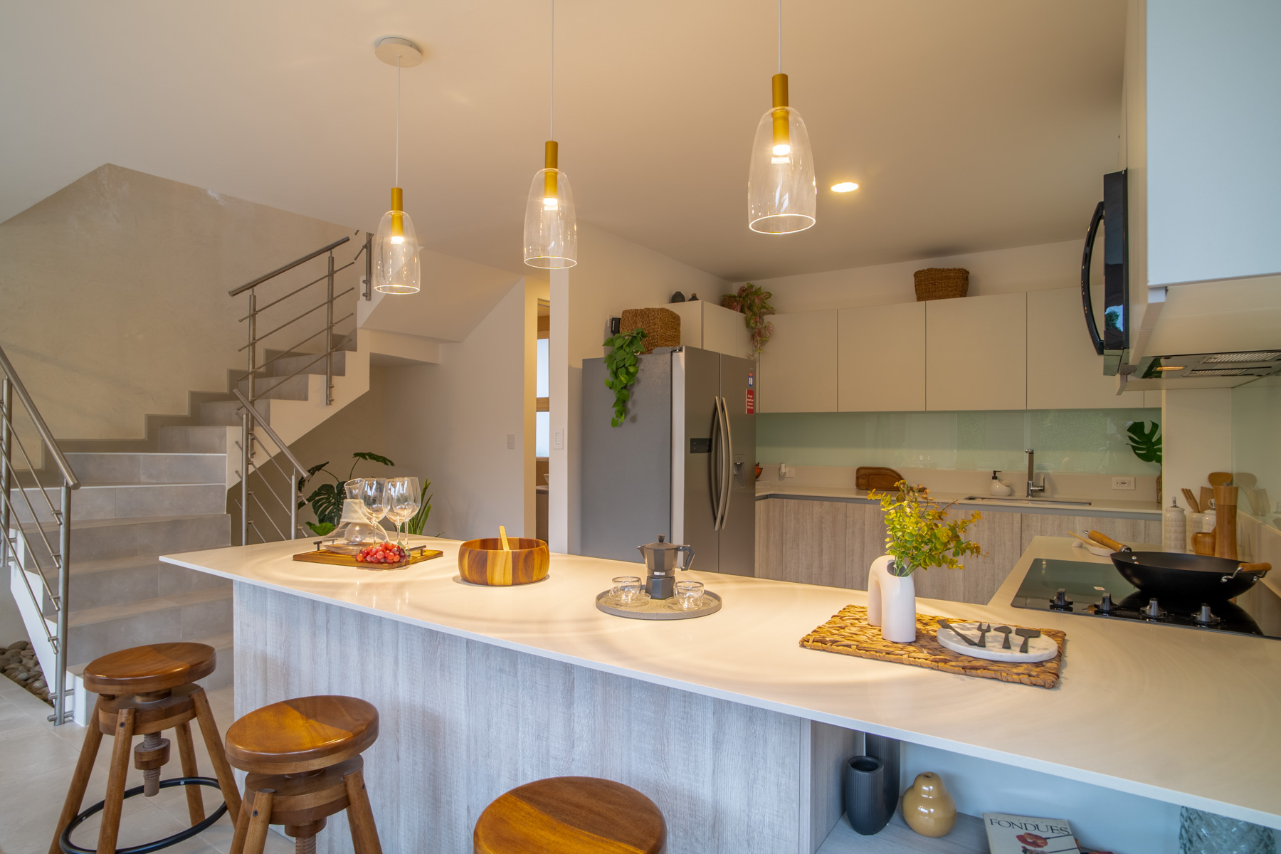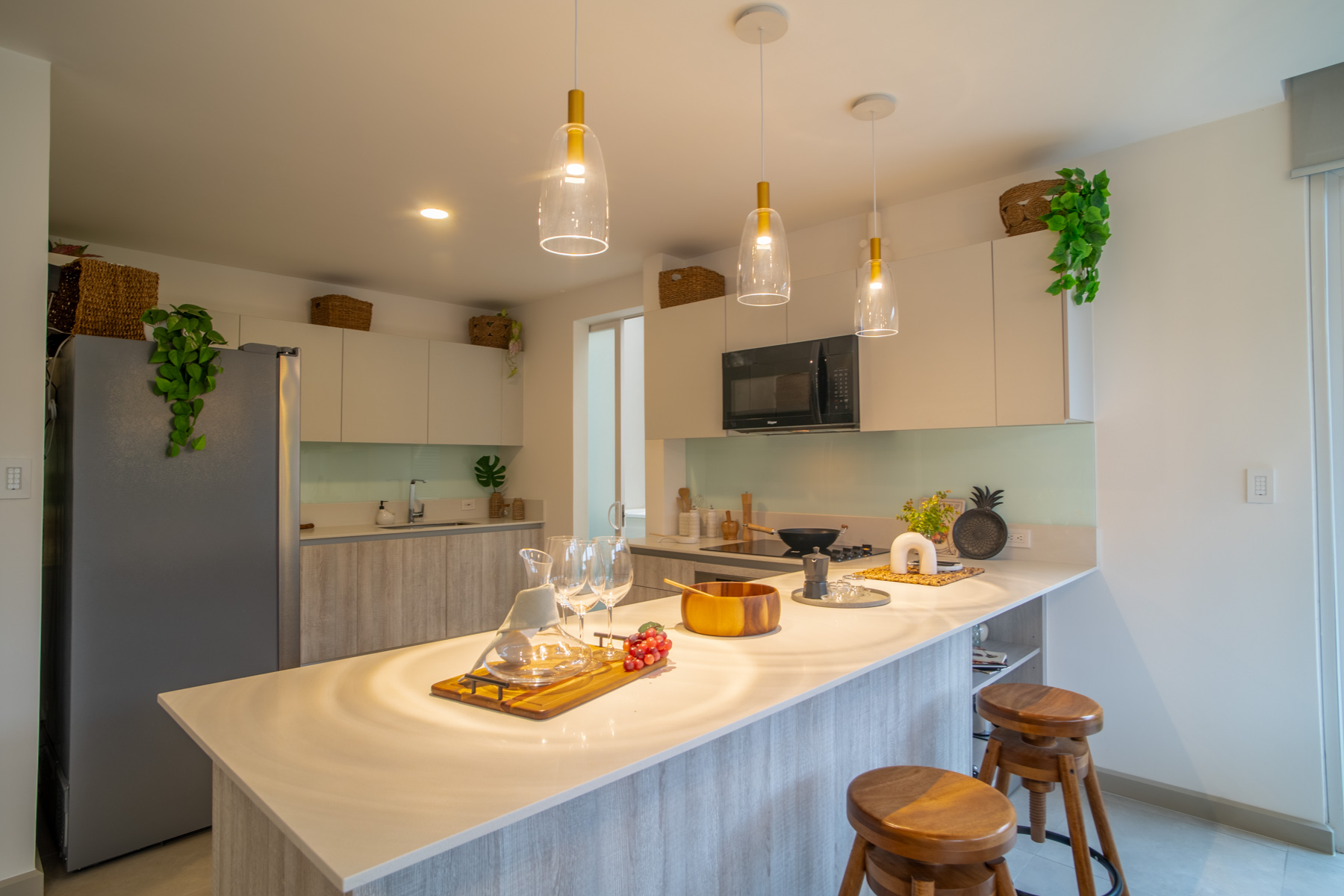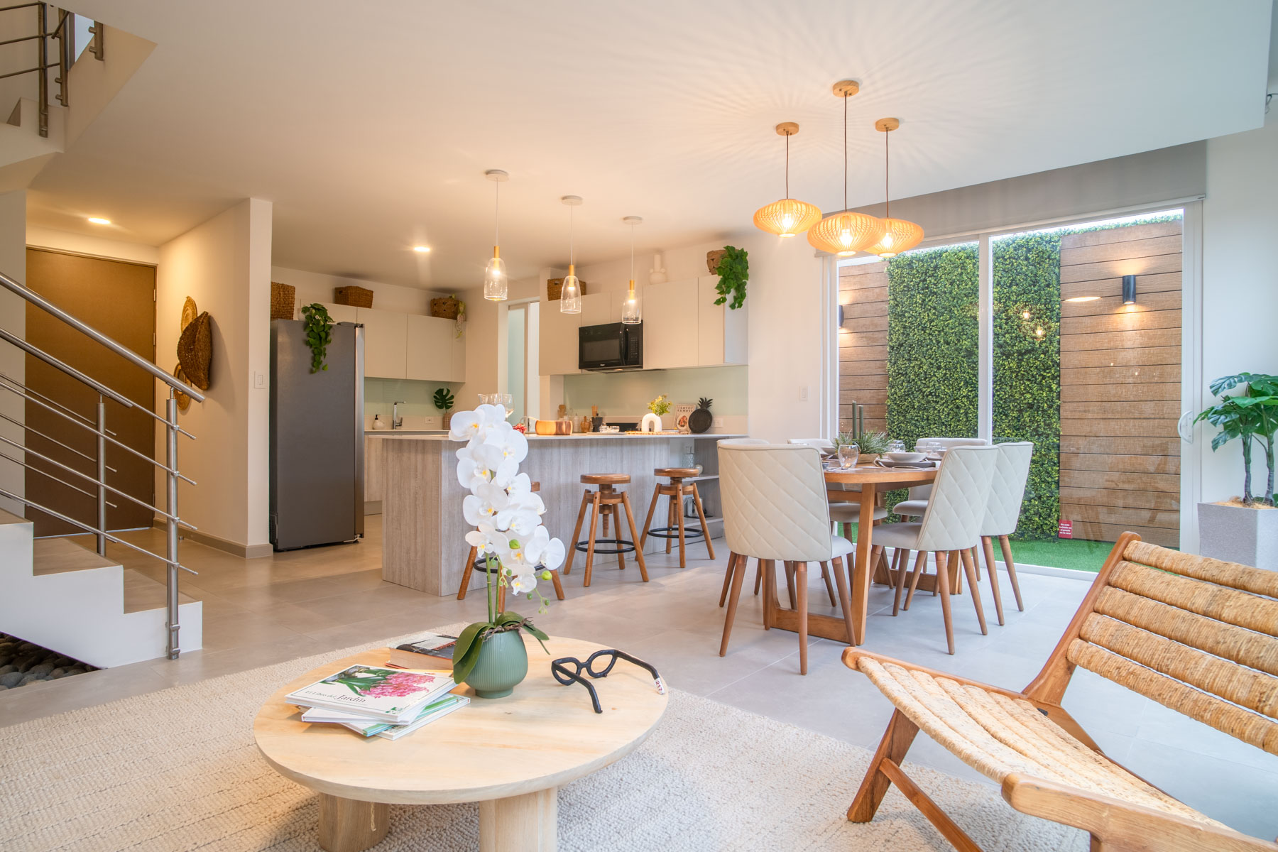 - Espacios amplios: Sala de TV, sala-comedor integrados con la cocina, amplio patio, lavandería