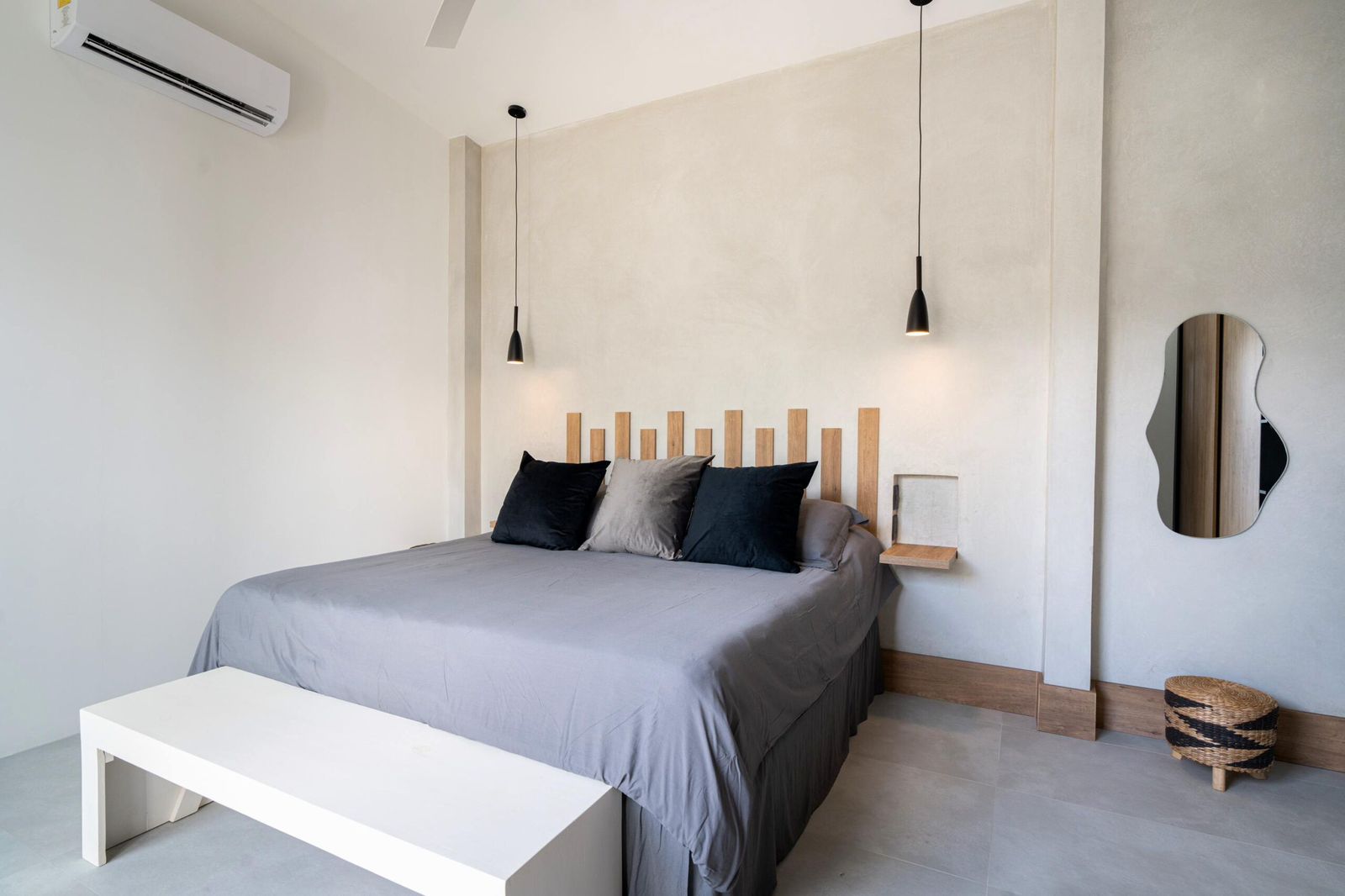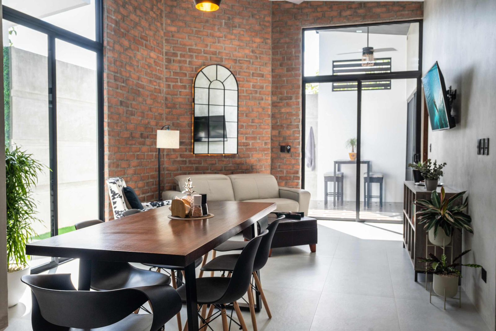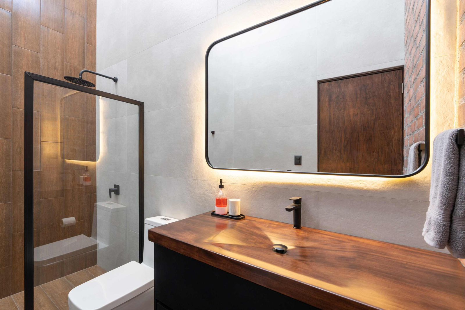 - 🧱 Paredes en microcemento y ladrillo, estilo contemporáneo