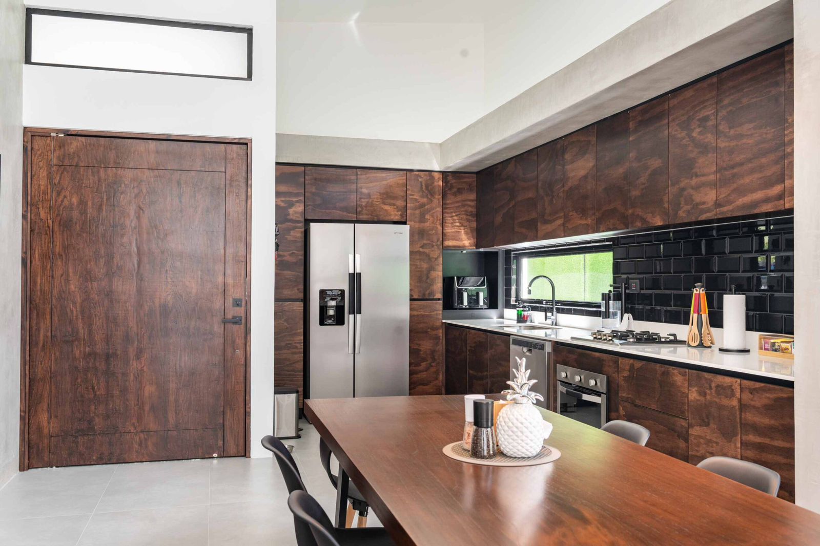 - 🍽️ Cocina con sobre de cuarzo y muebles de madera