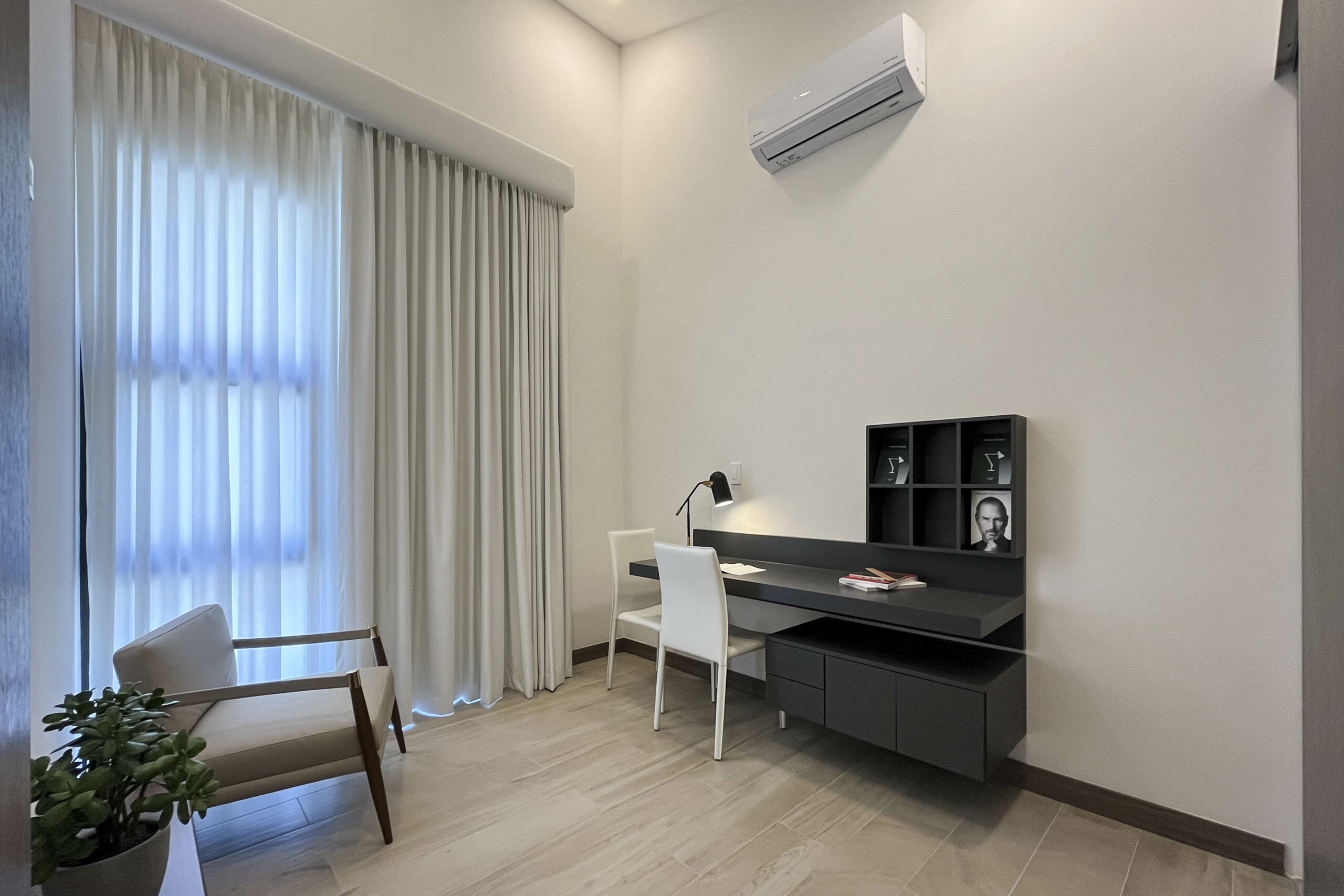 Dispone de 2 habitaciones secundarias compartiendo un baño completo, mientras la habitación principal cuenta con baño privado y walk in closet, en esta habitación destaca su espacio, apto para cama king, muebles de noche y muebles de t.v.
