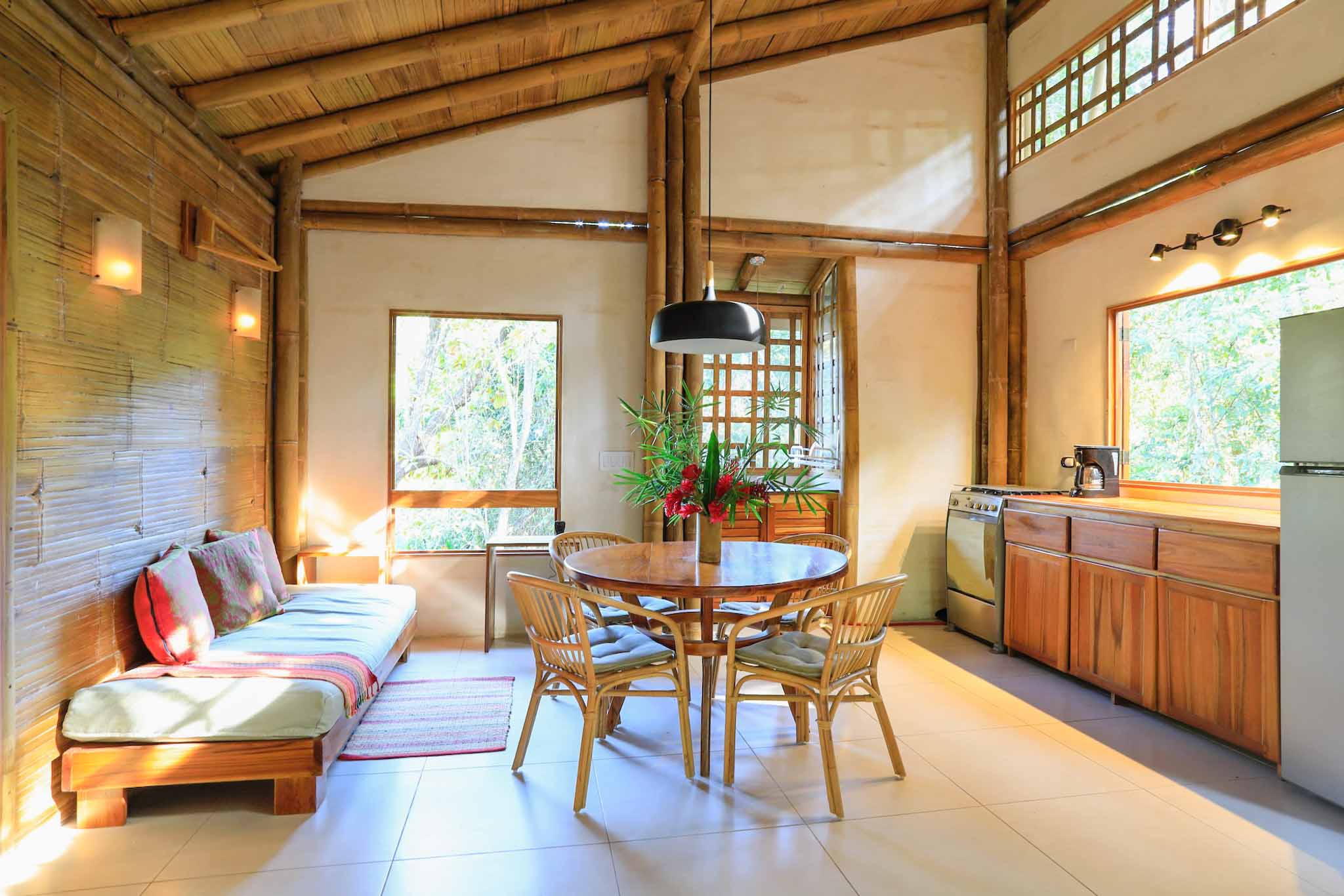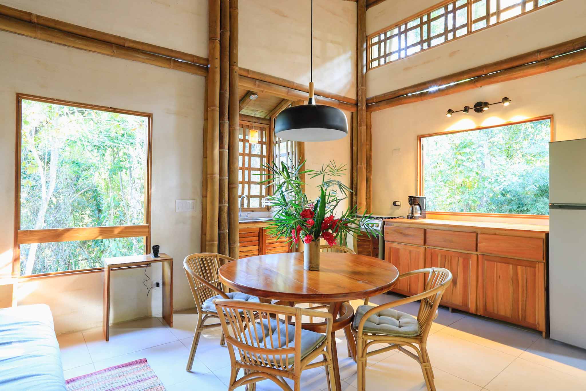 - Open-concept design: Spacious living area with large windows for a luxurious treehouse feel 🌳.