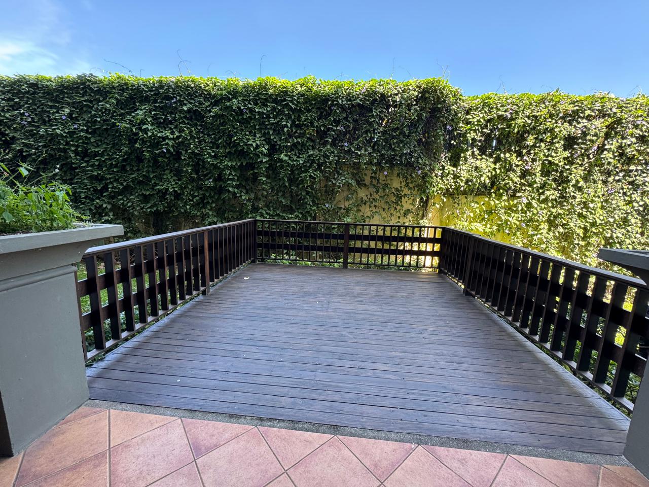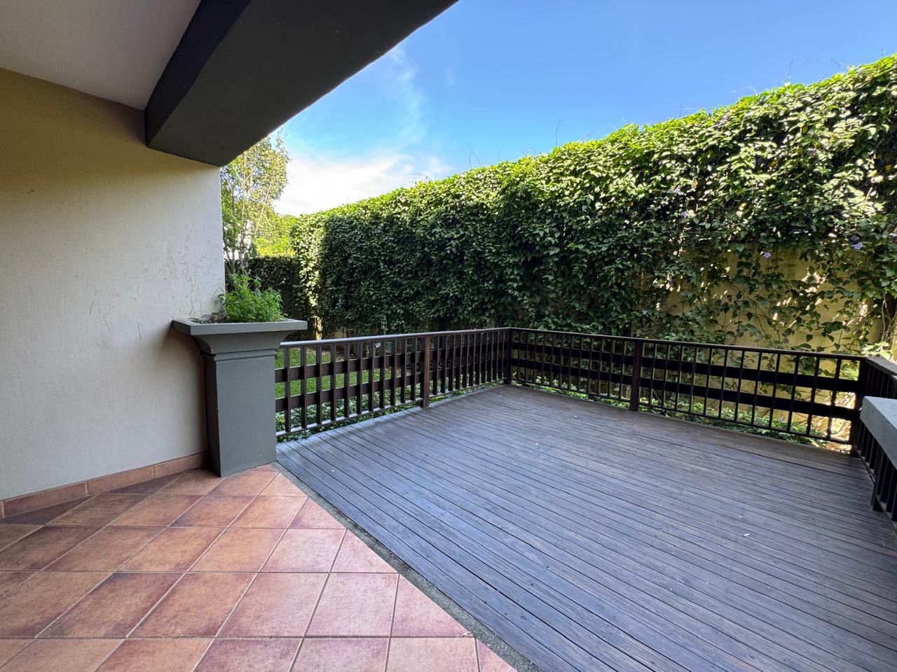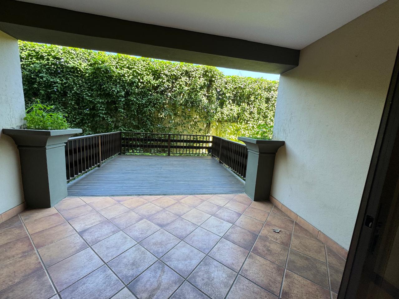 Viva rodeado de tranquilidad, confort y naturaleza en este hermoso condominio en Escazú, con una amplia terraza de madera que se abre hacia un jardín verde y privado, ideal para relajarse o disfrutar con amigos.