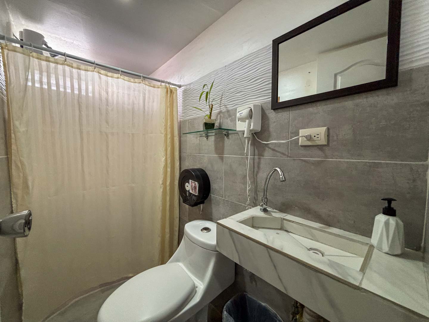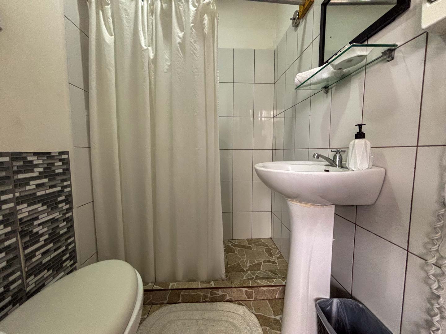 - Habitación privada con cama matrimonial + cama individual, baño privado (3 pax)