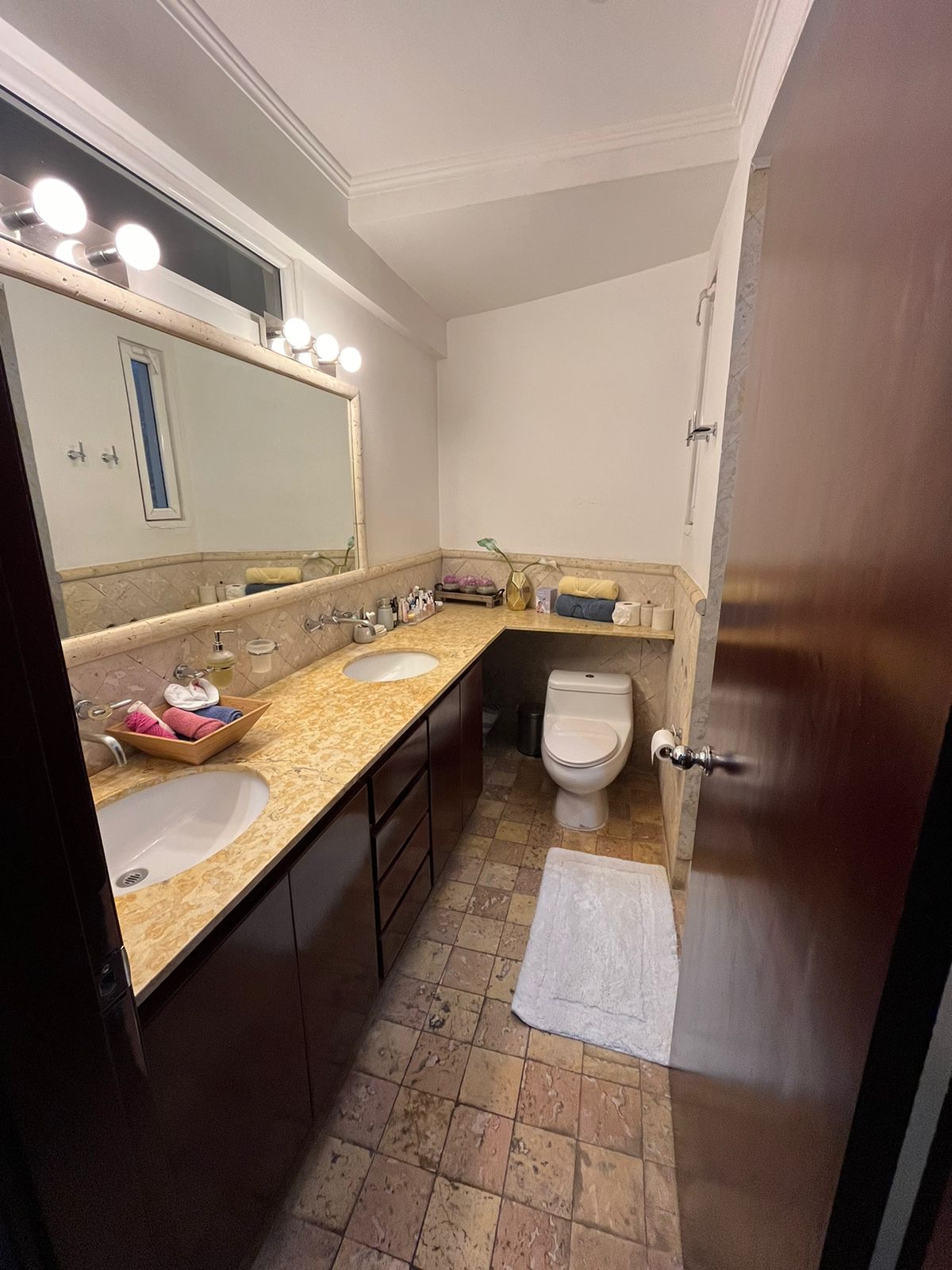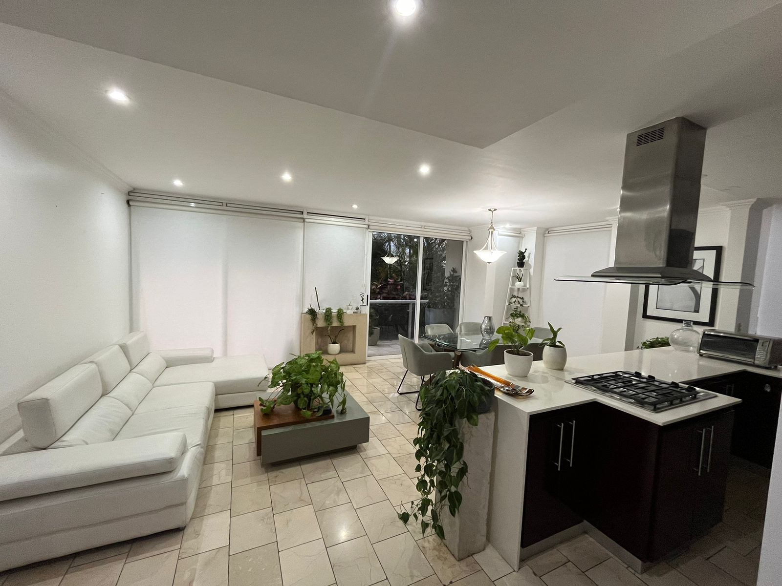 El apartamento cuenta con preciosa y amplia sala comedor, cocina empotrada y abierta, integrada y moderna, con isla de Quarzo blanco y linea blanca, habitación de servicio con su propio baño, área de lavandería, sala de tv, 3 Habitaciones, las secundarias comparten baño completo y la principal tiene su propio baño y wak-in-closet, además medio baño para visitas. Además por su ubicación cuenta con 2 amplios balcones para que pueda apreciar las preciosas vistas de la ciudad. Además tenemos 2 espacios de parqueo y bodega.