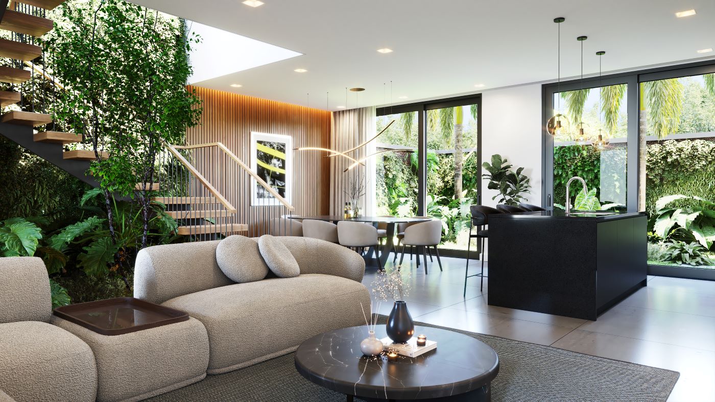 Biofilia: Más que una simple noción, la biofilia es el núcleo de nuestra filosofía. Cada diseño nace de este ideal, fomentando un vínculo más íntimo entre quienes habitan y la naturaleza que los rodea.