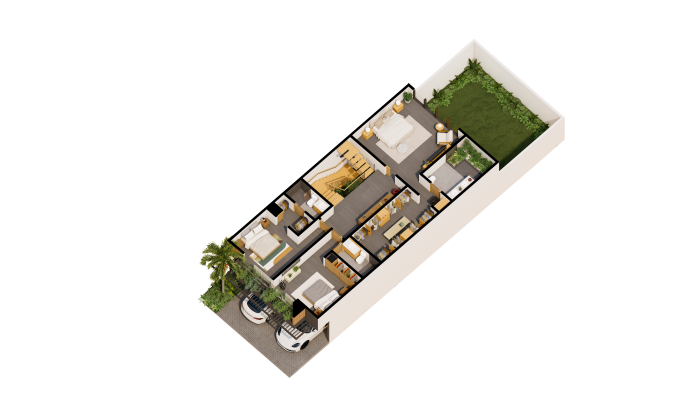 La residencia, con sus interiores meticulosamente diseñados, le ofrece múltiples opciones de distribución. Elija el diseño que mejor se adapte a sus gustos y necesidades. Pero no es solo la vivienda lo que le encantará: la Casa Club es un oasis de lujo con piscina, jacuzzi, gimnasio y extensas áreas verdes, ideales para su relajación y disfrute.