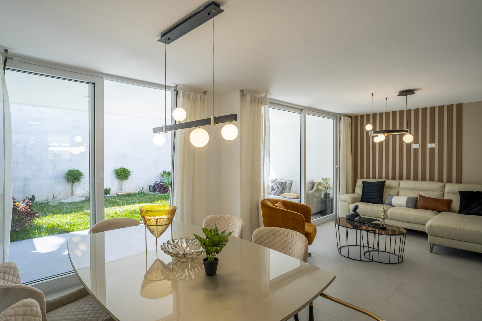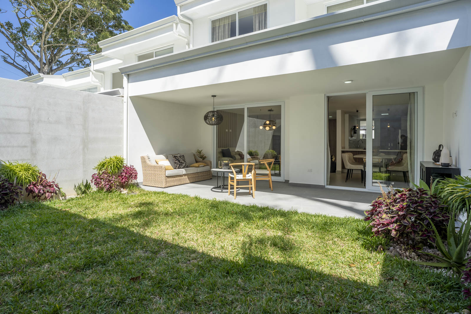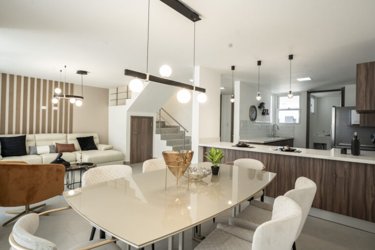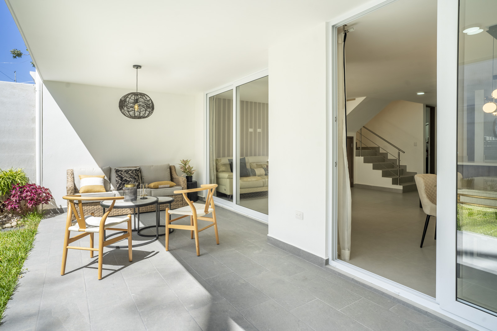 Su sala y comedor conectan a la terraza y jardín por medio de puertas de vidrio, lo que le da amplitud a sus espacios y facilita el disfrute de su tiempo de calidad en cada cena o en cada parrillada, con un área verde de ensueño para sus hijos y mascotas 👦🏻👧🏽🐶⚽️