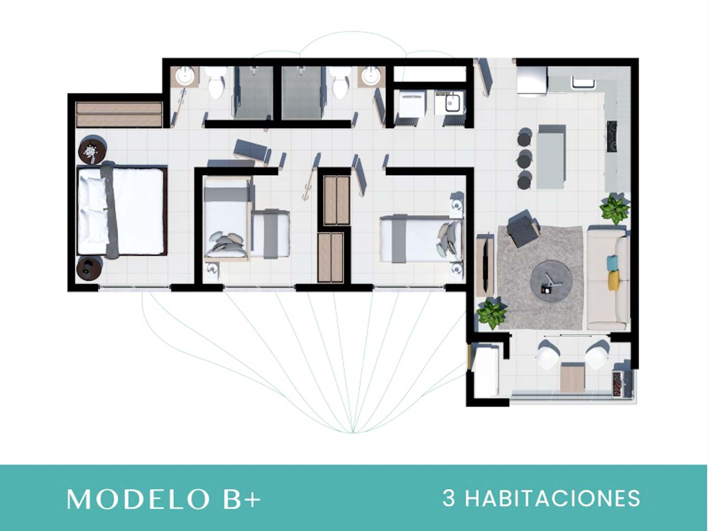 ✨ 3 habitaciones