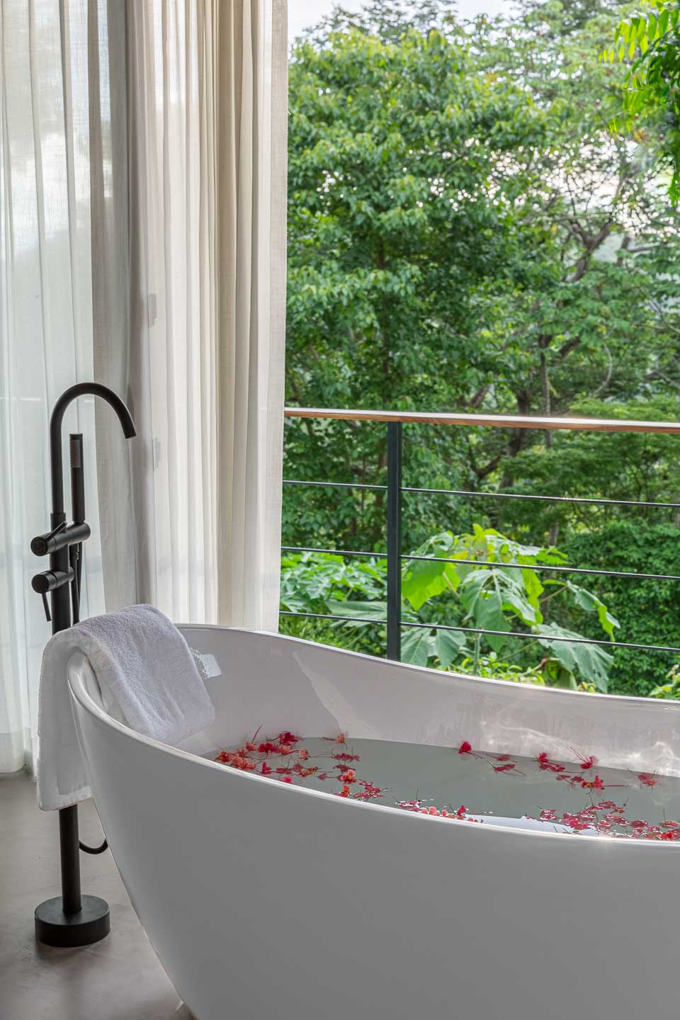 - Dos habitaciones principales en el nivel superior con bañeras de diseño abiertas a vistas impresionantes de la selva.