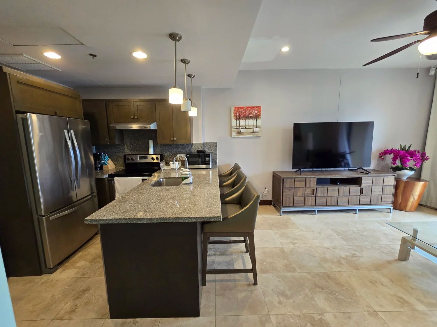 Diseño abierto con sala y cocina integradas