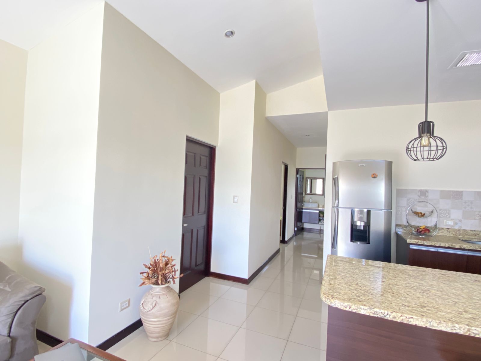 - Pisos de porcelanato y lámparas decorativas