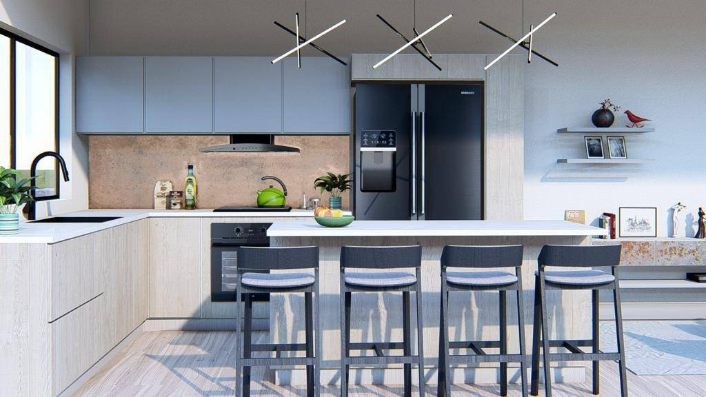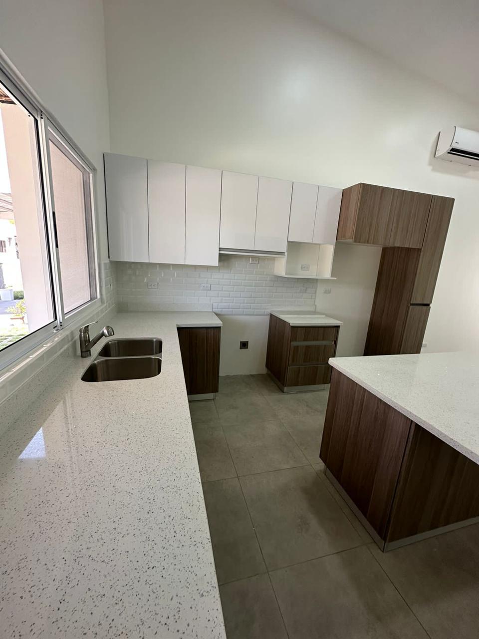 Las casa se venden con línea blanca incluida y la cocina cuenta con una maravillosa isla de cuarzo y sus respectivos muebles de cocina, un área de lavandería , aires acondicionados y abanicos de techo en cada espacio están incluidos en el precio de venta.