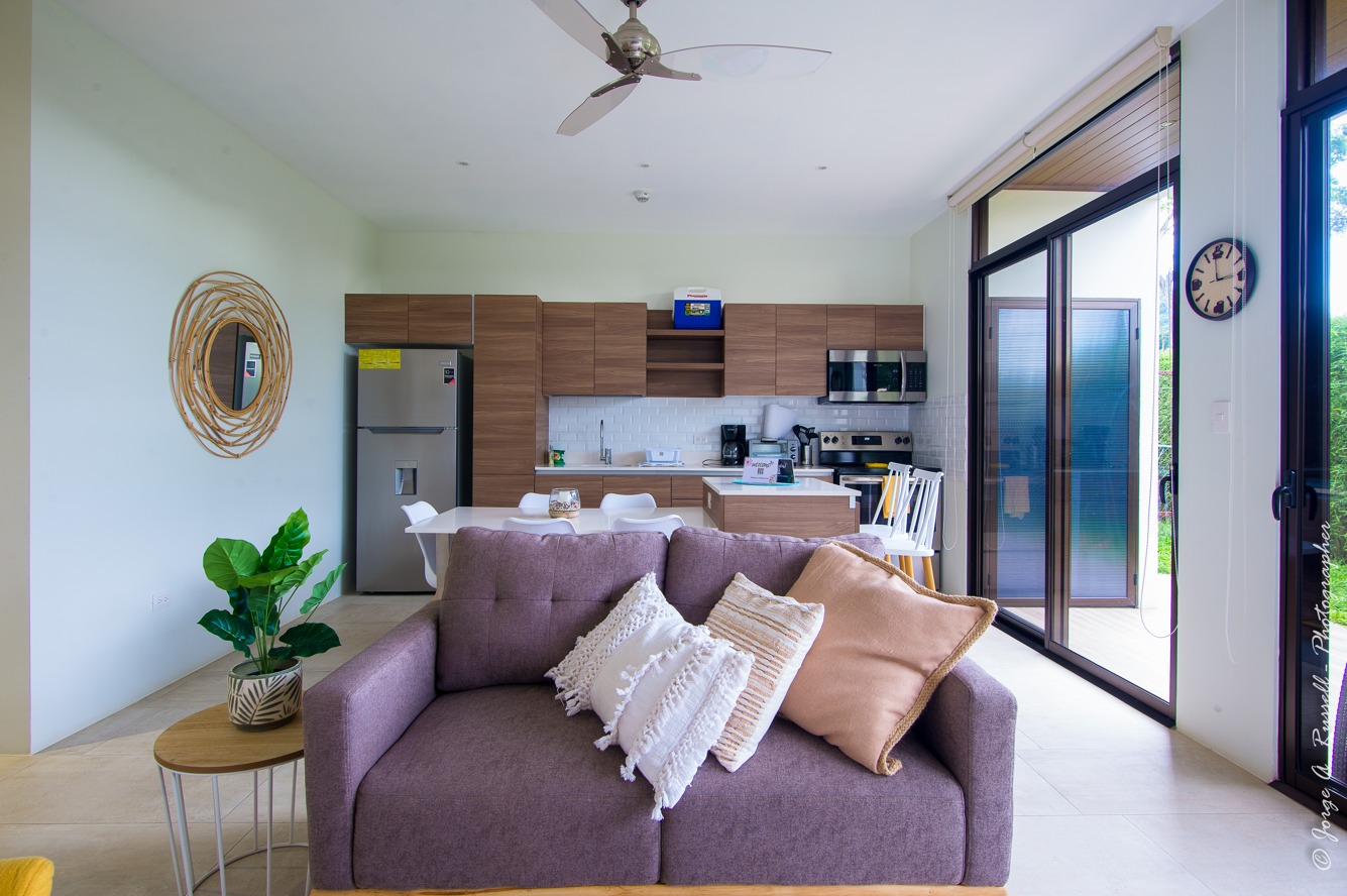 The condominium features an attractive common area, including a semi-Olympic swimming pool treated with mineral salts 💧—ideal for wellness and relaxation. It also offers a clubhouse with a beautiful view of the Jacó mountains ⛰️, perfect for spending time with family and friends.