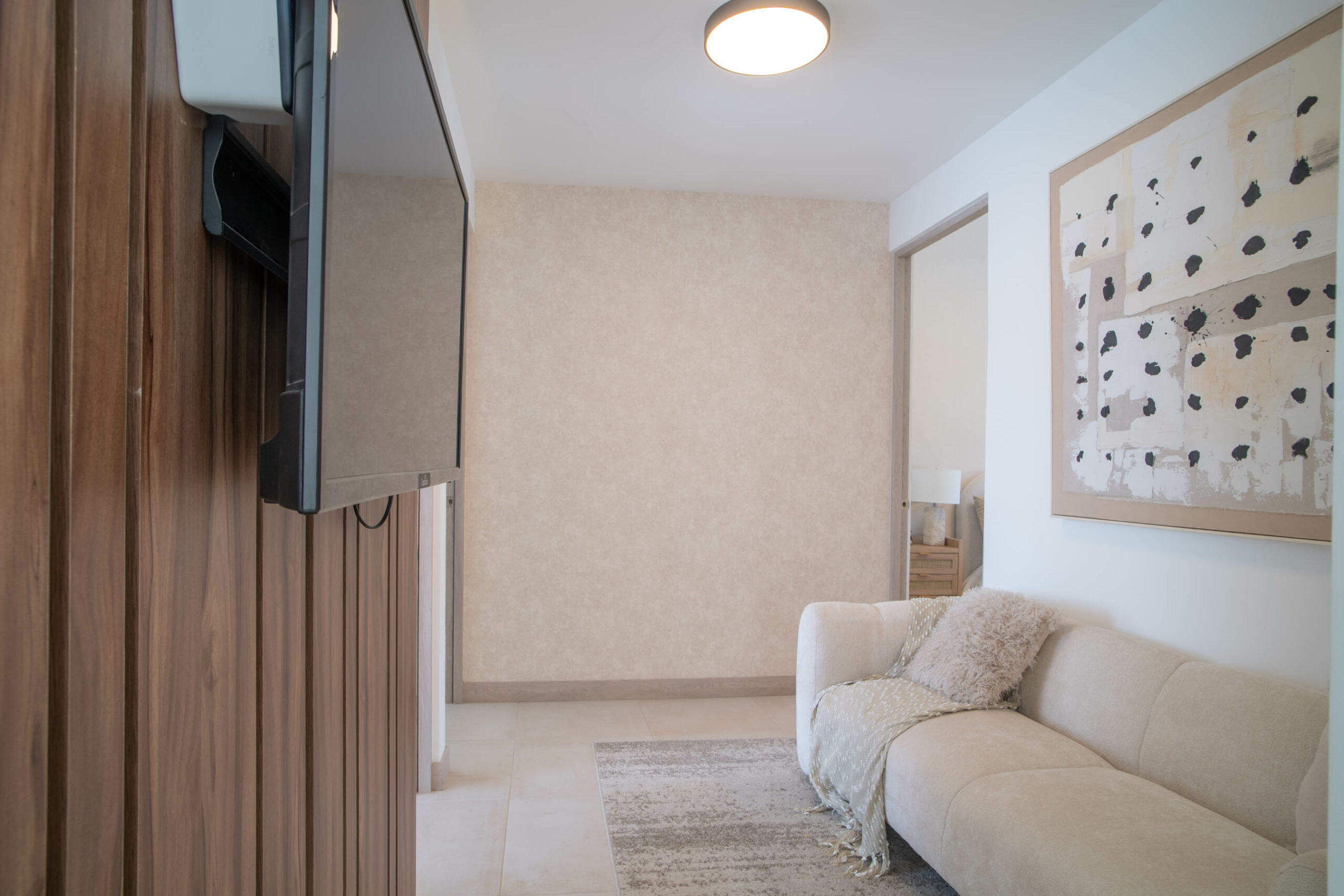 Sala de TV – 2 hab. secundarias – 1 baño completo compartido – 1 hab. principal (con walk in closet + balcón) y baño privado