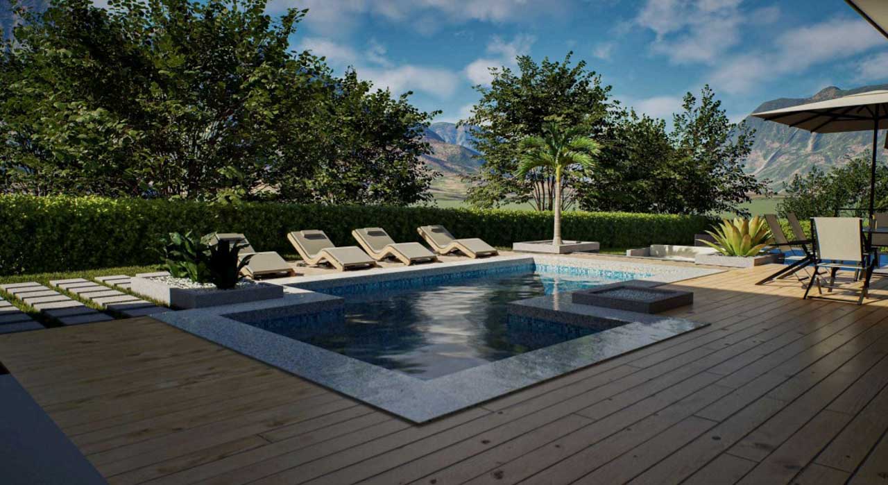 🌴 Piscina de 22 m² rodeada de un exuberante jardín de 1000 m²