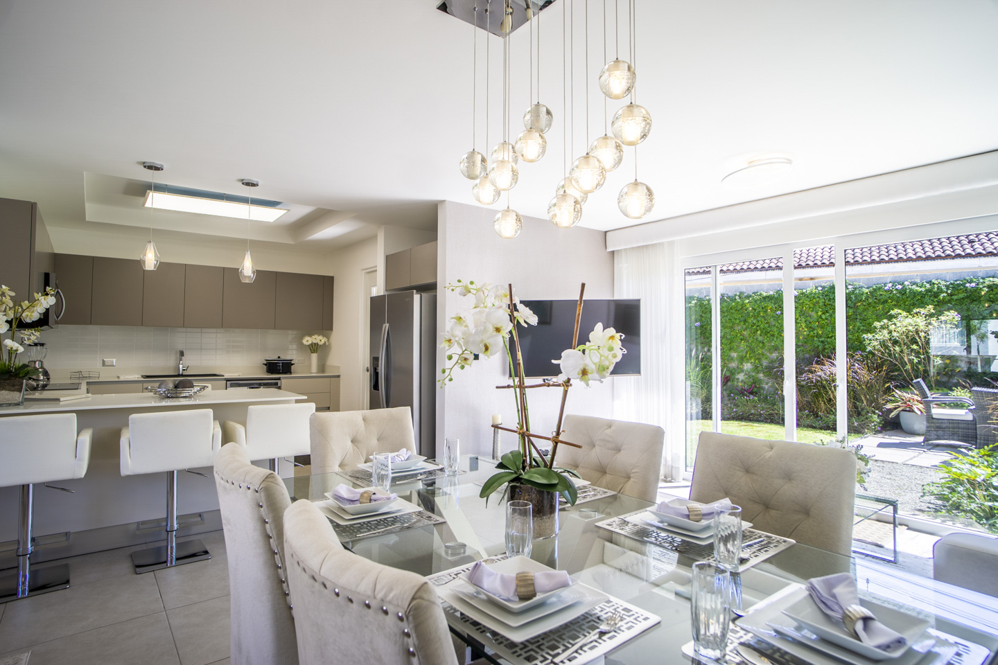 La casa cuenta con una amplia y Lujosa Cocina de 3.3 X 3.85m2, construida con un hermoso sobre de cuarzo; adicionalmente el primer nivel consta de Sala, Comedor y Sala de TV, medio baño, Jardín/Terraza, 2 parqueos bajo techo y posibilidad de 2 vehículos más al descubierto. El segundo Nivel cuenta con la Habitación Principal de 3.9 X 4m2 sumado a su balcón, Walk in Closet y baño. Las habitaciones secundarias cuentan con su propio closet y tienen una medida total de 3.9 X 3.9m2 dando el espacio necesario para sus hijos. Adicionalmente el segundo Nivel cuenta con una sala de TV y baño completo. Amplios Lotes desde 200m2 aproximados, dando un hermoso Jardín externo e interno.