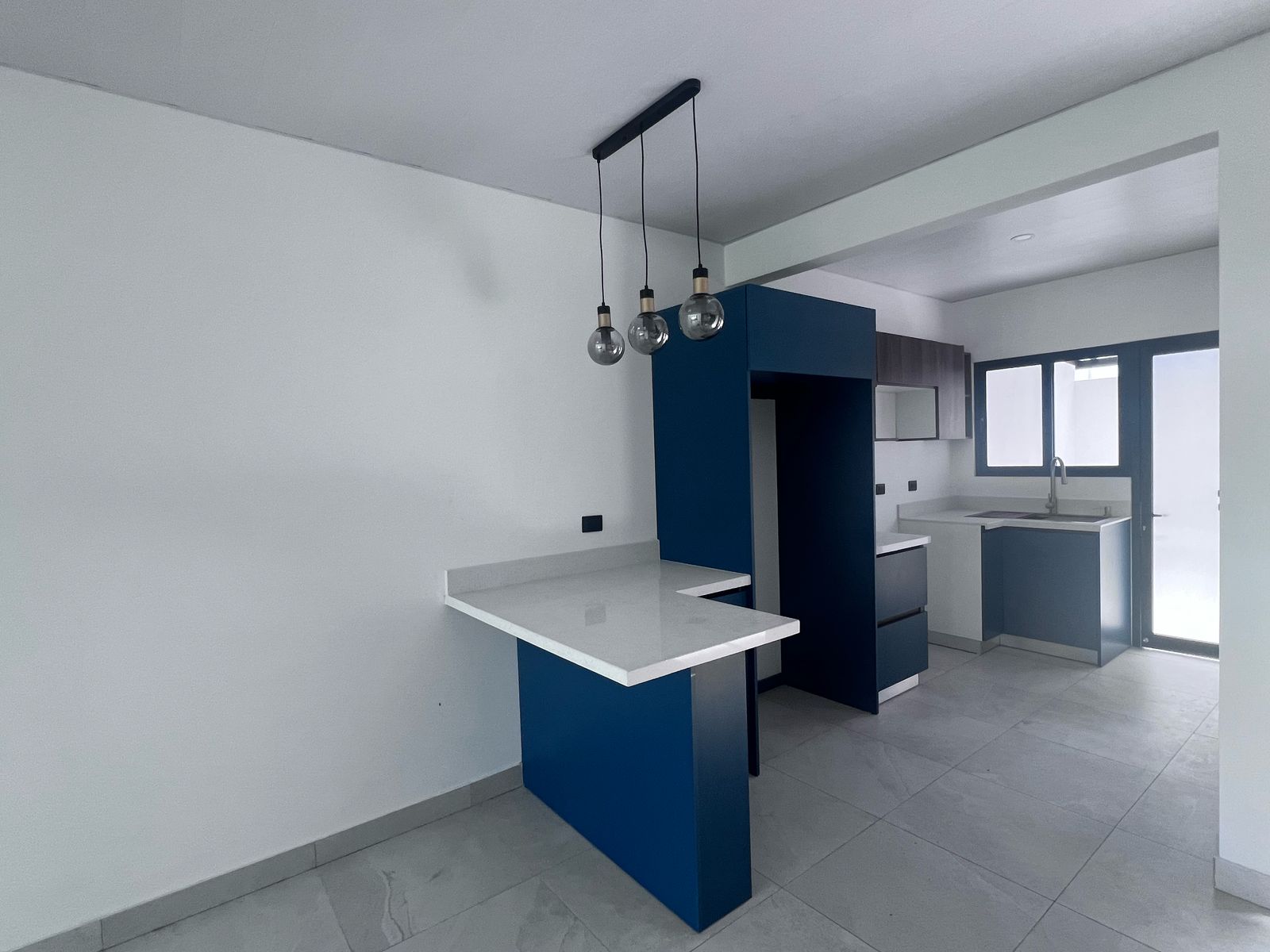 - Cocina de lujo con muebles en melamina hidrófuga y sobre de cuarzo, además de desayunador.