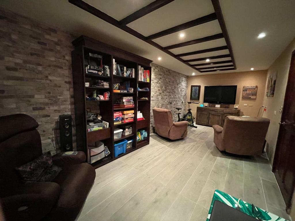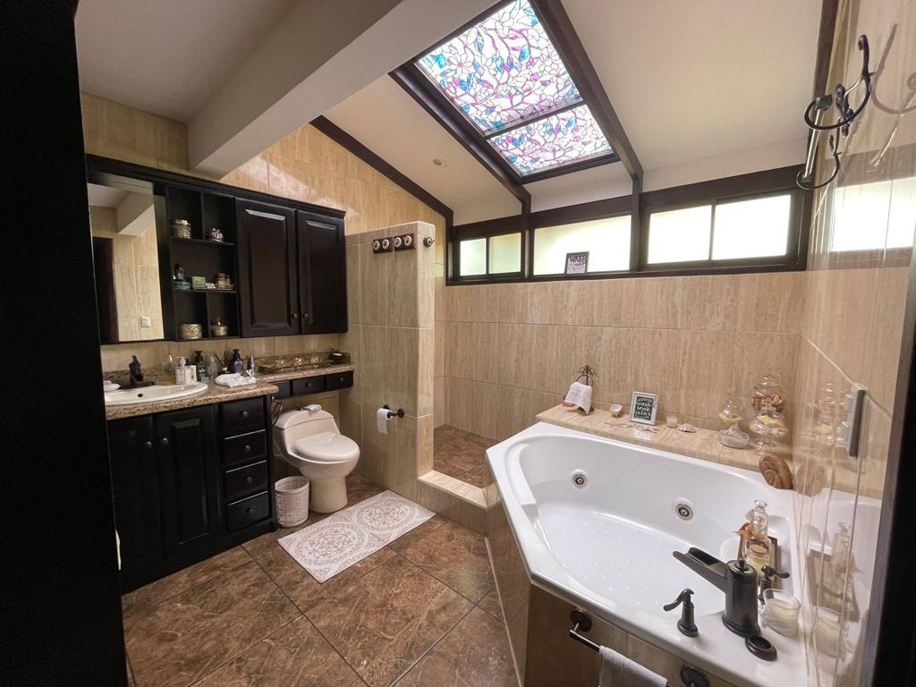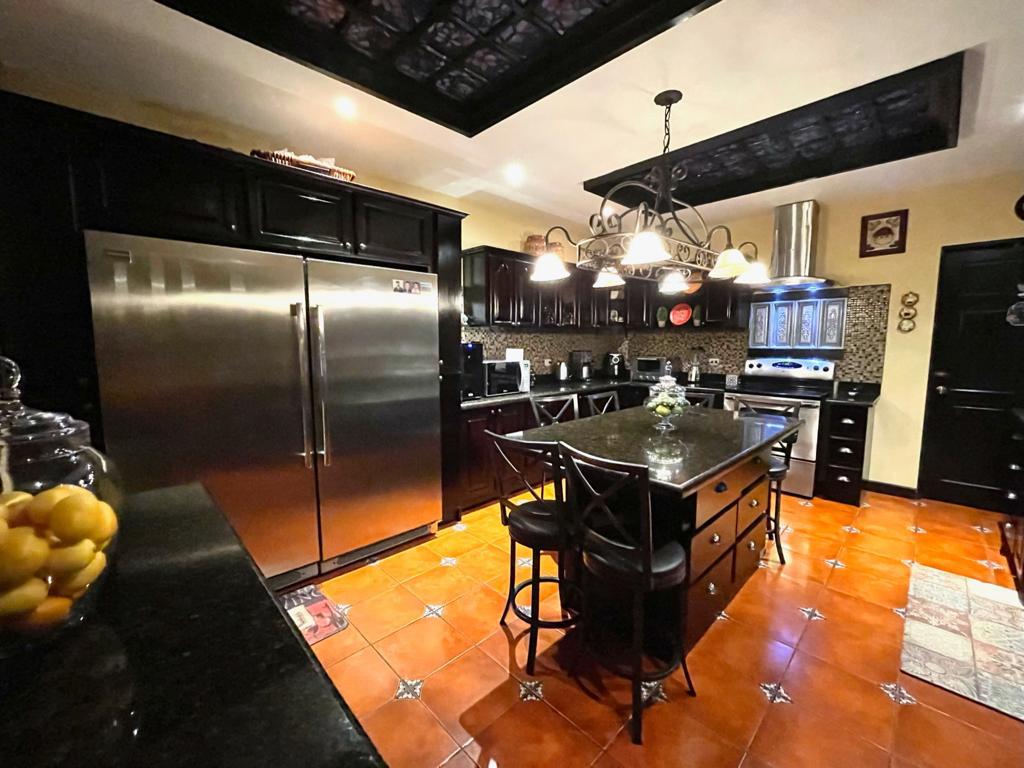 Las áreas sociales de esta propiedad son impresionantes. Con amplios espacios abiertos, perfectos para disfrutar en familia o para recibir invitados, esta casa cuenta con una amplia cocina con acabados de primera calidad, una verdadera joya para aquellos amantes de la gastronomía. Cochera techada para 3 vehículos y capacidad para estacionar entre 8 a 10 autos. Además, la casa cuenta con un ático para bodega en un tercer nivel y vigas de almendro, detalles que la hacen única y exclusiva. En el primer nivel cuenta con área de servicio con habitación y baño, además de una gran habitación que ahora mismo es una cómoda sala de TV y amplísima y comodisima área de pilas.