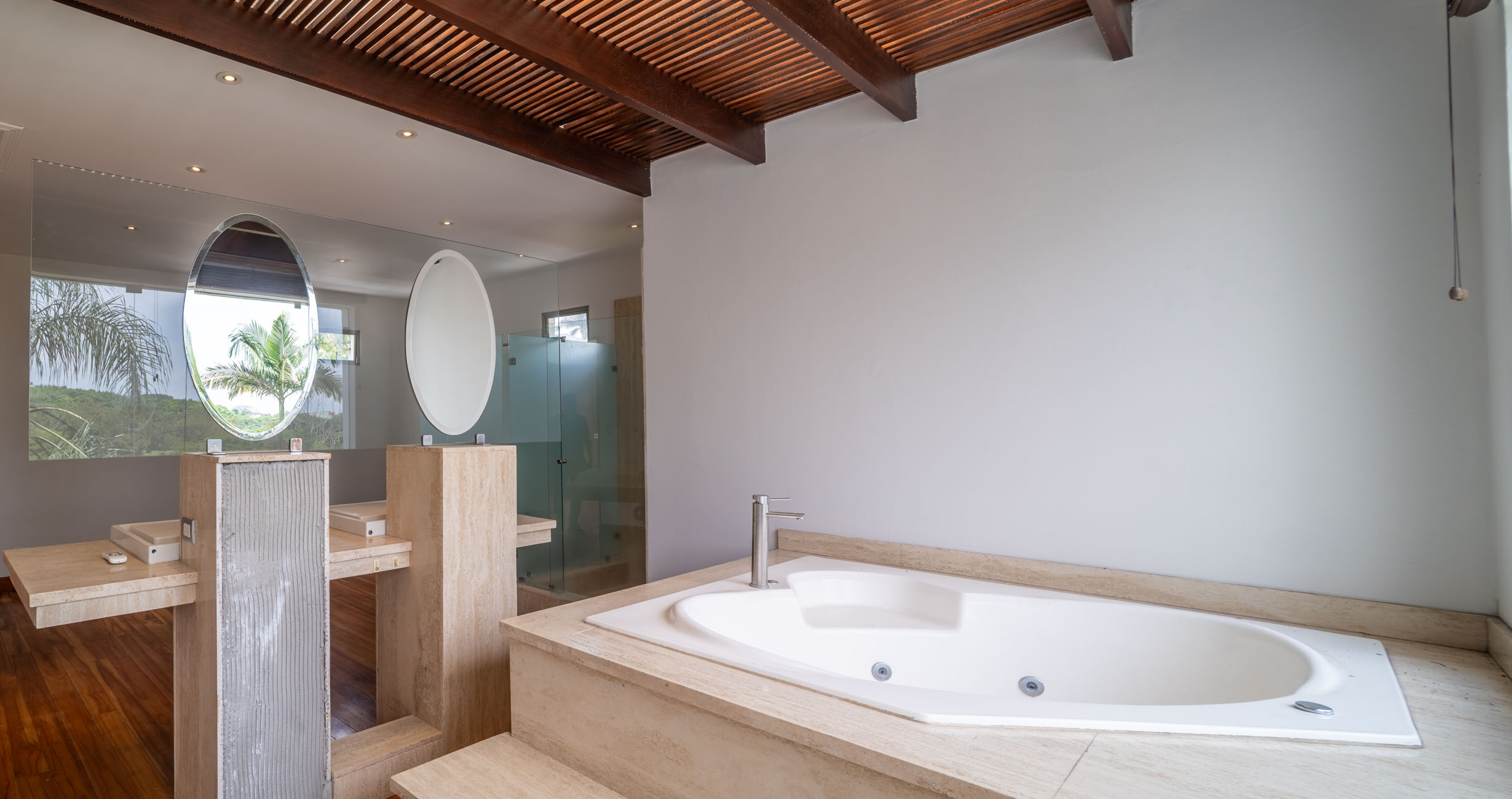 1 hab principal con baño privado, ducha doble lavatorio, jacuzzi y terraza grande con vista.