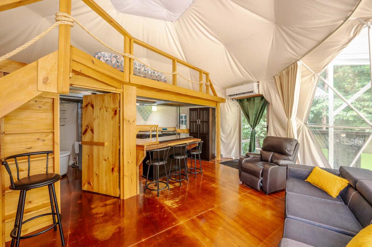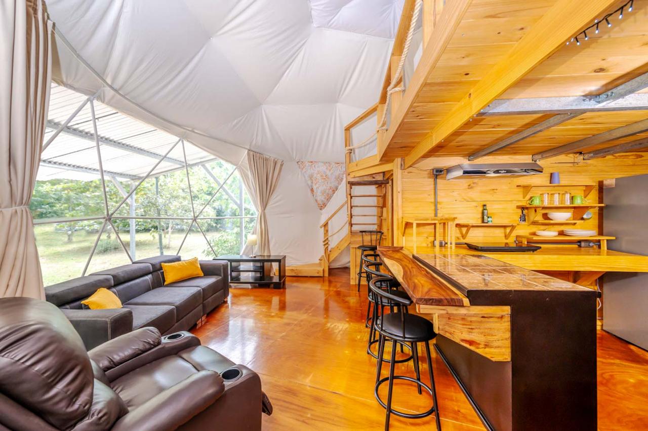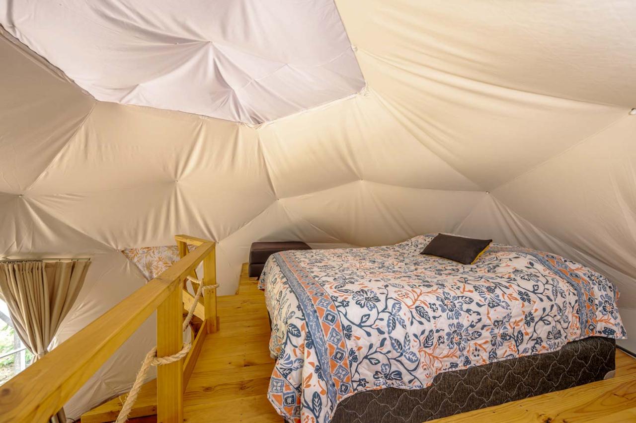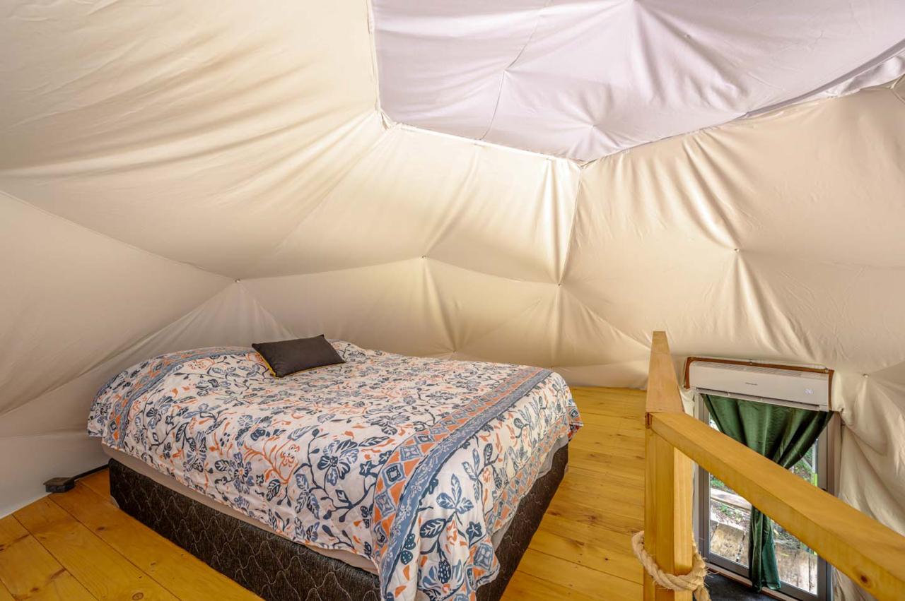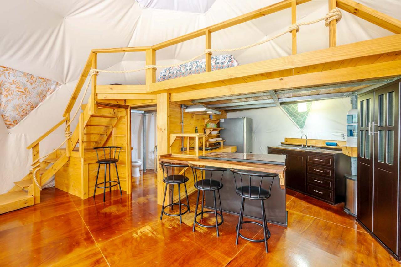 La propiedad cuenta con domos espaciosos y funcionales, cada uno con 1 habitación y 1 baño, distribuidos en 60 m² de área habitable. Diseñados para maximizar el confort, estos espacios ofrecen una experiencia única en un entorno sereno y rodeado de vegetación tropical.