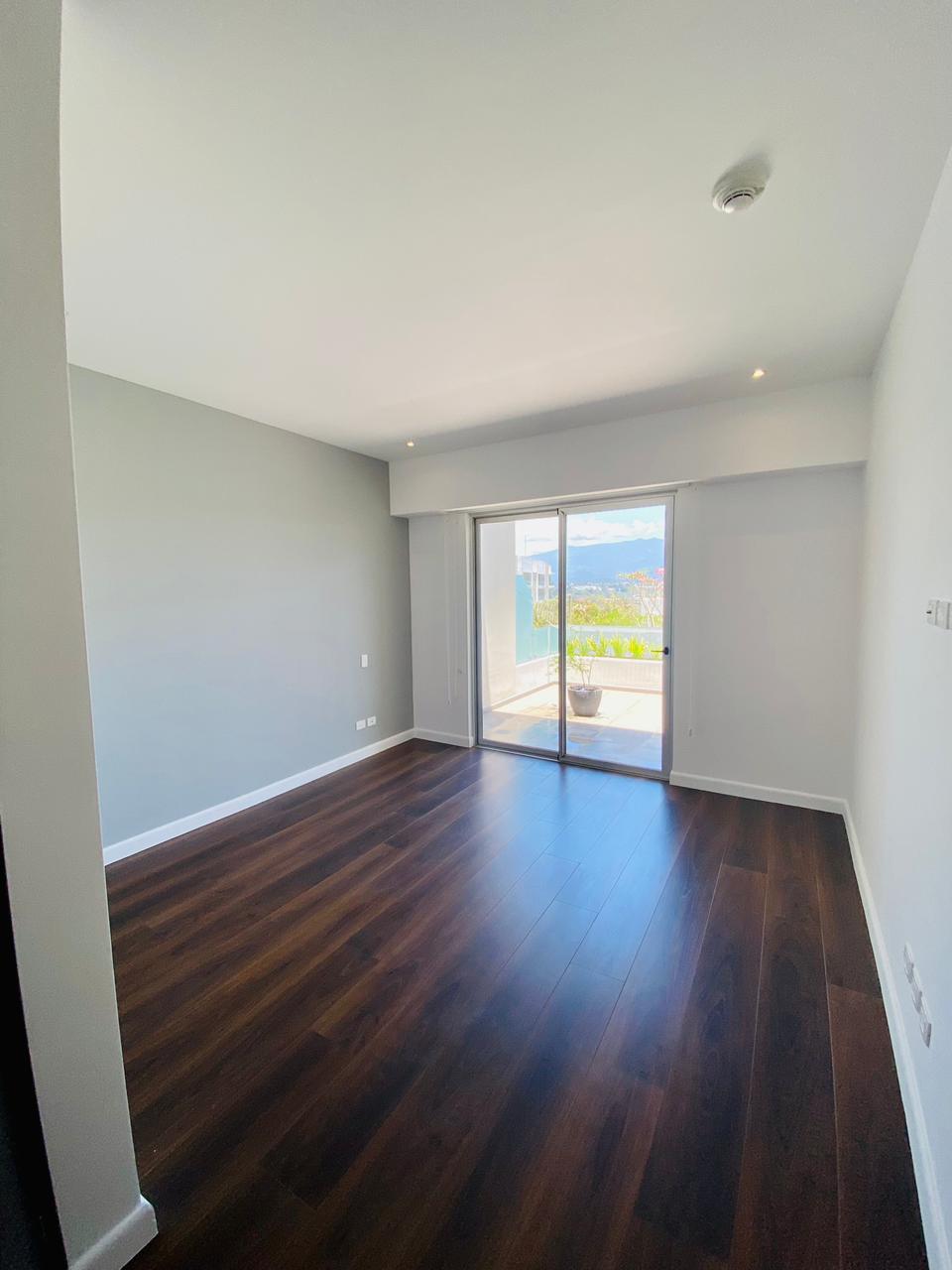 El apartamento tiene 2 parqueos, cocina empotrada, lavadora de platos, refrigeradora, baño de visitas, cuarto principal amplio con baño y acceso a la terraza.