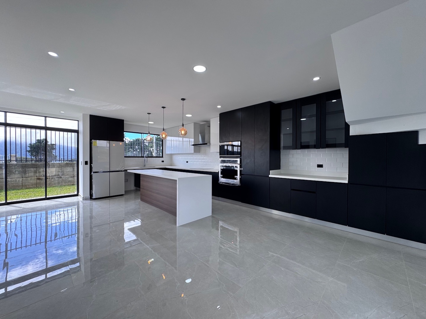 - Gran cocina con amplio mueble de 8 metros de largo con isla en cuarzo.