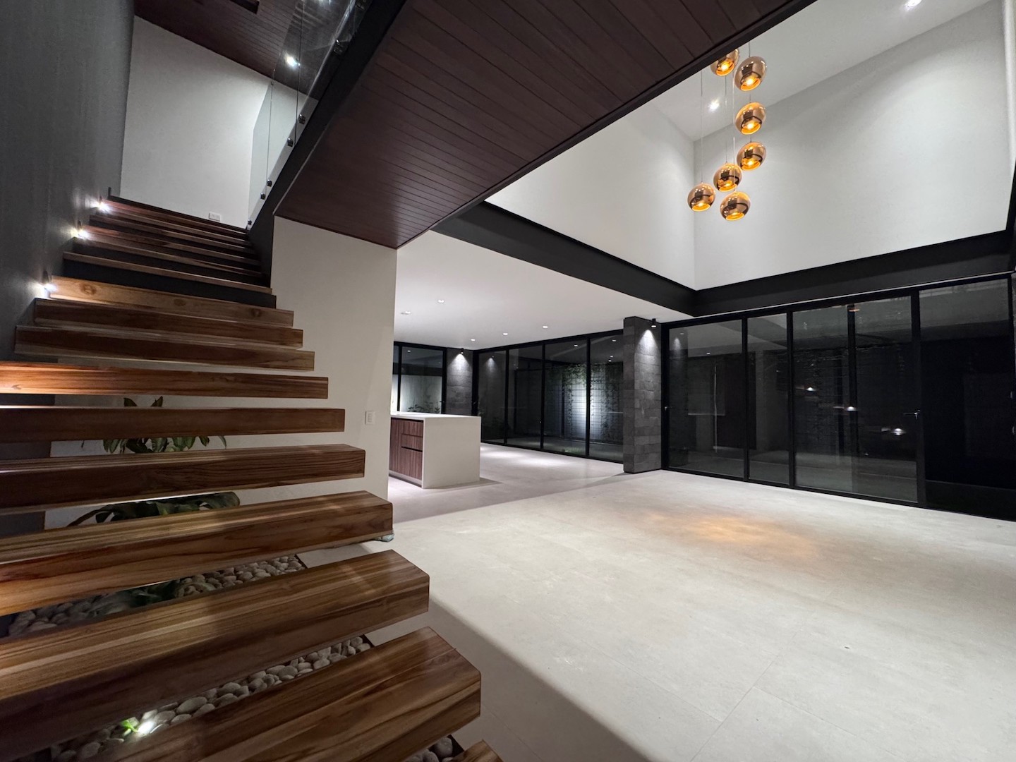Esta casa cuenta con 4 habitaciones, 2,5 baños, bodega, sala tv, cocina con diseño europeo, con isla de 2,40 metros de longitud, luces indirectas, luces de cortesía en gradas y baños, prevista para auto eléctrico.