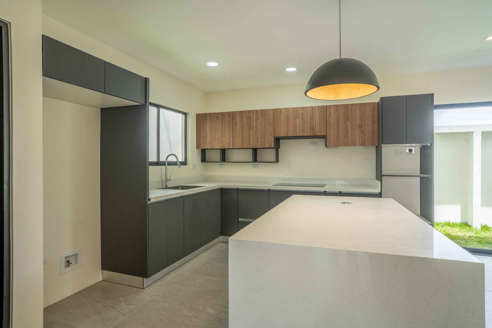 - Hermosa cocina en cuarzo con isla y múltiple espacio de almacenamiento.