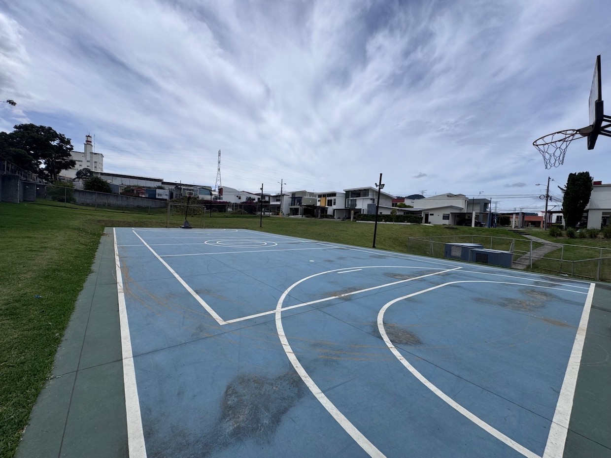 Condominio con cancha multiusos, parques infantiles, parqueo de visitas y planta de tratamiento de agua.
