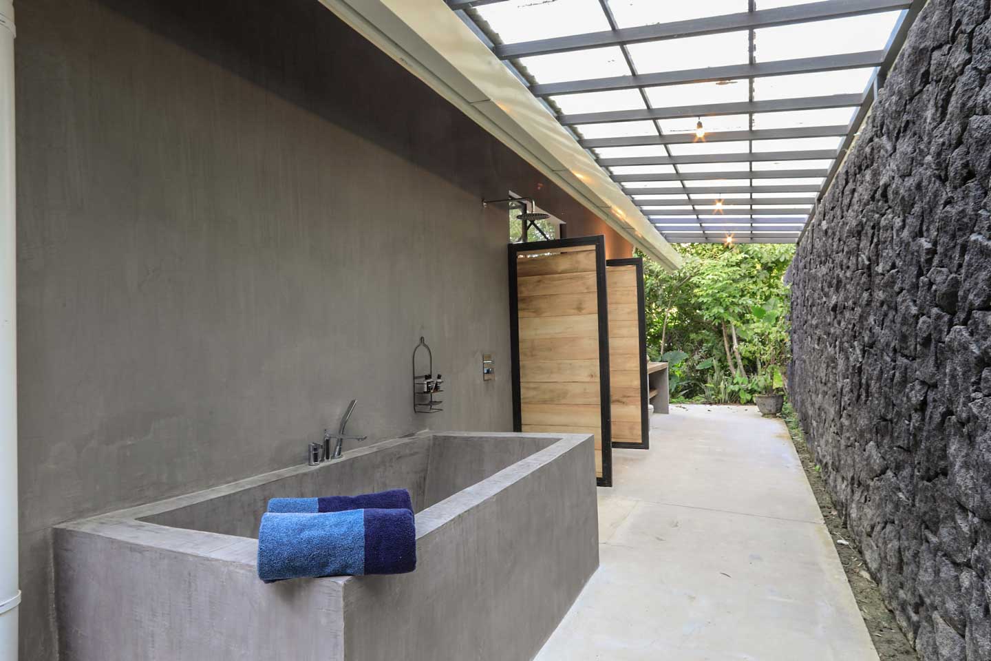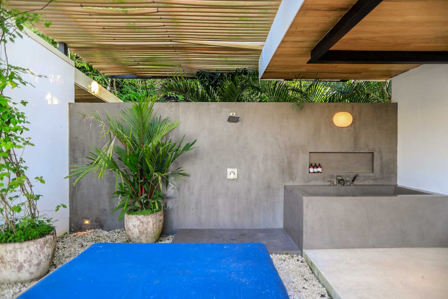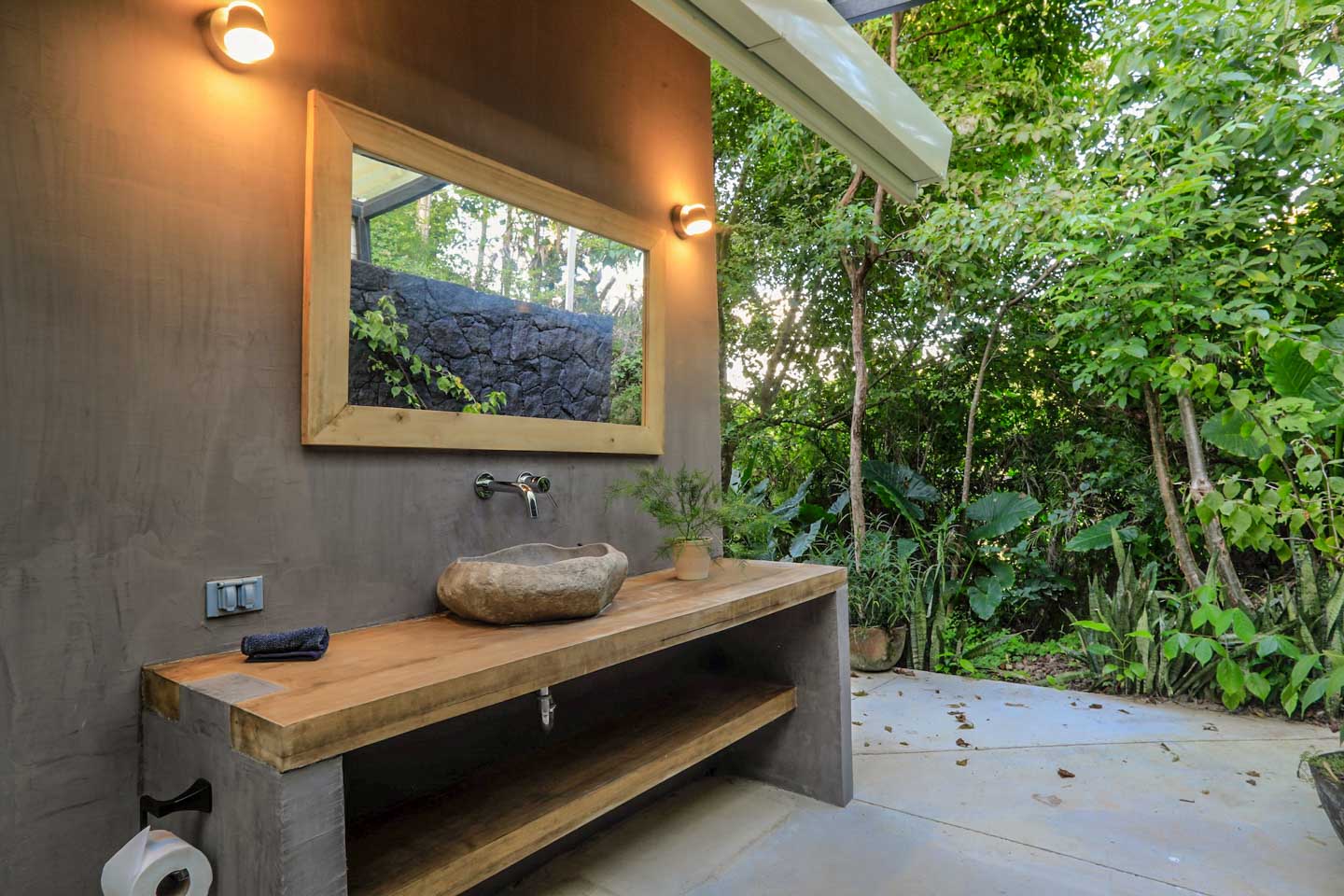 - Private guest cottage: Features a full kitchen, outdoor tropical bathroom, cold plunge tub, high-tech projector, and air conditioning.